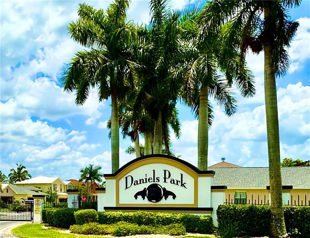 Experience the Daniels Park lifestyle! This quaint community with a hometown feel is centrally located in the heart of Fort Myers off the Daniels Corridor. The location is known for its abundance of retail shopping, restaurants, entertainment, Publix, Whole Foods & SWFL International airport. Yet, Daniels Park is tucked away, quiet, private, & gated for peace of mind. Upon entering the community, you'll find the pool & clubhouse just inside the gate. As you loop around this small family friendly neighborhood you arrive at your meticulously maintained attached villa with 2 car garage. From the second you step inside this warm and inviting 2 bedroom / 2 bathroom home, you can see & feel the perfection. The flooring consists of 18" ceramic tile and cherry laminate throughout. The kitchen boasts brand new Whirlpool appliances (2024) and a new Incinerator garbage disposal, stainless Moen farmer’s sink & faucet (2024). You'll also find an abundance of cabinet space & a large walk-in pantry. Conveniently located off the kitchen you have a Whirlpool HE washer & extra large capacity dryer with additional storage cabinets above. The primary bedroom has 2 walk-in closets with built-ins (unique to this villa) and the primary bath has a beautifully tiled shower with glass enclosure. The family room gives abundant space for large gatherings and the over sized 3 panel slider has new luxury vertical blinds 2025. It opens to your spacious lanai with privacy side screens. And this lanai, it’s a tranquil retreat overlooking the manicured landscape & open green space that will quickly become a favorite spot. The roof is new in 2023, along with a new A/C & water heater in 2024. New seamless gutters all the way around to protect the foundation. The HOA covers your exterior home insurance policy, roof, lawn maintenance & irrigation. All of this AND located in a no flood zone which means no flood insurance required….Welcome Home!