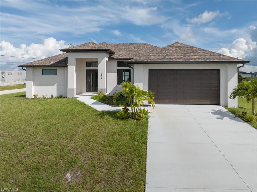 Experience elevated living in this beautifully built new construction home featuring 10-foot ceilings and 8-foot modern doors throughout. This spacious 3-bedroom + den, 3-bathroom home with a 2-car garage offers a sleek, contemporary design and high-end finishes. Step into a bright, open layout with tile flooring throughout, hurricane impact windows and doors, and a stunning double-door entrance with smoked glass. The custom acrylic kitchen cabinets, quartz countertops with waterfall edge, and stainless-steel appliances create a chef’s dream kitchen. The luxurious owner's suite features his-and-her walk-in closets, dual floating vanities, a freestanding soaking tub, and a frameless glass shower. Enjoy outdoor living with a spacious covered lanai and paver driveway. Other highlights include: Den/home office space Sleek floating bathroom vanities Spacious layout perfect for entertaining Seller will contribute toward buyer’s closing costs! Located in a fast-growing area close to new developments and future amenities. Don’t miss your chance to own this move-in ready, modern masterpiece!