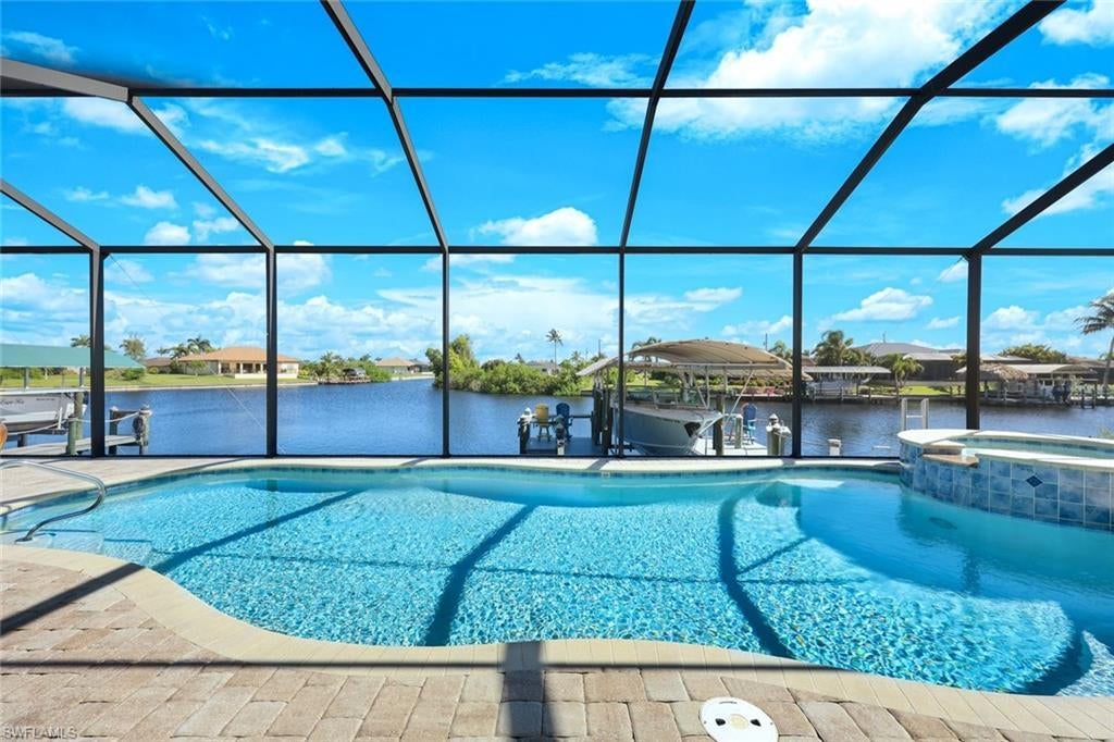 Experience the best of coastal Florida living in this pristine, like-new custom home with Gulf access, located in the sought-after southern section of NW Cape Coral. Designed by Paul Homes and loaded with thoughtful upgrades, this 3-bedroom, 3-bath residence offers exceptional comfort, functionality, and style. Inside, the open-concept layout is ideal for both daily living and entertaining, featuring a formal dining space, granite kitchen with abundant cabinetry and pantry, and a bright living area that flows effortlessly to the outdoor retreat. The owner’s suite is a serene escape with dual vanities, a dedicated makeup area, soaking tub, and a luxurious walk-through shower. The split-bedroom floorplan ensures privacy for guests, while one of the three full baths opens directly to the lanai—perfect for pool days. Outdoors, enjoy year-round relaxation with a heated saltwater pool and spa, a fully equipped summer kitchen under the covered lanai, and stunning intersecting canal views. Boaters will appreciate the Gulf access via a covered 10,000 lb. boat lift, secondary lift for kayaks or jet skis, and a large dock perfect for sunset gatherings. The oversized, air-conditioned 4-car garage offers room for toys, storage, or a workshop. Impact windows and doors, upgraded insulation, newer tile roof, AC, and fencing ensure peace of mind and energy efficiency. Ideally positioned just minutes from Pine Island Road, with quick access to shopping, dining, and major routes like Burnt Store Road and I-75, this home is a short drive to Fort Myers and the Gulf beaches. You're also just around the corner from the future Seven Islands Yachting Community and a quick trip to vibrant Matlacha, known for its waterfront restaurants, art galleries, and small-town charm. Parks like Sirenia Vista and Joe Stonis are within walking distance, with a third park planned nearby. Whether you're seeking a full-time residence, seasonal getaway, or high-end vacation rental, this property delivers the ultimate Southwest Florida lifestyle.