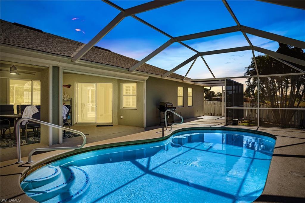 This is a VACATION RENTAL only. Owner will not consider annual rentals. Weekly rentals are welcome. Welcome to Villa Blue Coral Oasis! Find your own secluded slice of paradise in this lovely 3 bedroom 2 bath pool home. This beautifully maintained tropical-landscaped property is located in the northwestern part of Cape Coral with virtually equal distances to the famous Gulf islands Boca Grande off Port Charlotte and Sanibel Island and Ft. Myers Beach off Cape Coral and Ft. Myers. From here, you have access to all the best beaches SW Florida has to offer with a short connection to many great restaurants, bars, and supermarkets. KEY FEATURES: This home is pet friendly; has a pack & play for guests. Living Room: When entering the house, you will step into the living room with a comfortable seating arrangement and a flat-screen TV. The open floor plan is ideal for keeping everyone together as it combines the kitchen, living room, and dining room into one large space. There are also board games for additional entertainment. Kitchen/Dining Room: The fully equipped kitchen features stainless steel appliances, granite kitchen countertops, a Keurig, a latte machine, and an integrated breakfast bar with additional seating. Right next to it is a large dining table with seating for six. Both the kitchen and living room area directly access the lanai via large glass sliding doors. Master Bedroom/Bathroom: The master bedroom is found off of the living room and features a king-size bed, flat-screen TV, and private access to the lanai through the sliders. The attached bathroom suite includes a large walk-in shower and a double-sink vanity. Guest Bedrooms/Bathrooms: The additional guest bedrooms are on the other side of the house, off the kitchen and dining room area. One bedroom offers a queen-size bed, and the other offers two twin-size beds. They share the second bathroom, which has a shower/tub combination. Pool/Lanai: The fully fenced yard will provide you with plenty of privacy for you to be able to enjoy your private tropical oasis. Enjoy meals outside in The spacious lanai, which features a poolside dining table that seats up to 6 people. In addition, there are two gravity chairs next to the electric heated pool, where you can relax and work on your Florida suntan. You won't miss any of your favorite shows with the outdoor flat-screen TV. Exterior lighting and dimming capability enhance the nighttime outdoor experience around the pool. What a great place for family gatherings, So what are you waiting for? Book Villa Blue Coral Oasis today for a memorable Florida getaway!