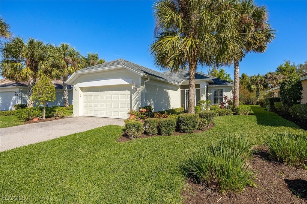Resort style living at its best! This home has been impeccably cared for. A NEW metal stone coated ROOF was installed in July 2023, NEW A/C June 2025, and NEW accordion storm shutters. The EXTENDED lanai backs up to nature preserve, so will always have a peaceful backyard. The remodeled kitchen comes with new granite countertops, updated appliances, roll out shelves and soft close cabinets. This home is a short walk to amenities. This includes a beautiful community pool, miles of scenic walking trails, and two dog parks. At the community center, not only will you find a lagoon style pool with a water slide, bridge and water features, but also a playground for children; basketball, volleyball, tennis, pickleball and bocce court, a gym with a wide range of equipment, and a clubhouse where organized events are hosted regularly. Or you could take a trip to Calypso Park within the community which offers a disc golf field and a fishing pier that overlooks one of the community's largest lakes. COME LIVE LIFE ON VACATION! This well cared for home is ready for you.
