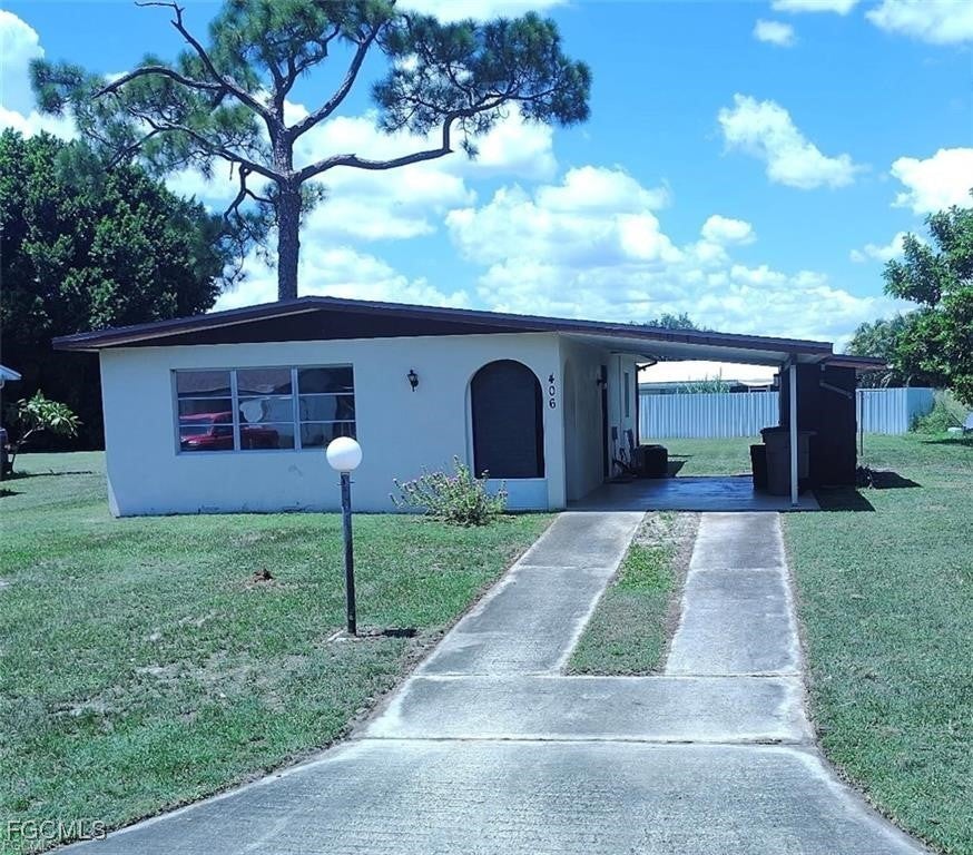 Charming 2-Bedroom Home in the Heart of Lehigh Acres! Discover this delightful 2-bedroom, 1-bathroom home situated on a spacious 0.21-acre lot—offering plenty of room for outdoor activities and entertaining family and friends. The property features a covered carport and a convenient shed for additional storage. Inside, you’ll find tile flooring throughout, a warm and welcoming living area, and a cozy kitchen ready for your personal touches. Washer and dryer hookups are located inside for added convenience. Recent updates include a new roof (2016) and A/C system (2022). The home is on city water and sewer and is conveniently located just a short drive from supermarkets, schools, parks, and more. Reach out today for your private showing!
