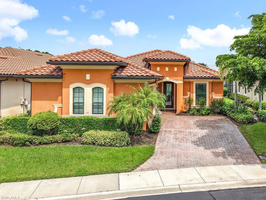 Exquisite Lake & Golf Course Estate in Porto Romano at Miromar Lakes! Experience the pinnacle of luxury living in this masterfully designed 4-bedroom, 2.5-bath residence, perfectly positioned to showcase breathtaking views of the lake and golf course. Every detail of this home has been curated to embody timeless elegance, comfort, and sophistication. Upon entering, you are welcomed into an open-concept floor plan enhanced by rich dark wood flooring, intricate tray ceilings, and custom designer finishes. The gourmet chef’s kitchen is a centerpiece of refinement, boasting premium granite surfaces, an extended entertainment bar, and top-of-the-line gas appliances, ideal for both intimate gatherings and grand-scale entertaining. The dining and great room seamlessly merge, framed by expansive picture windows that capture stunning vistas of the lake and manicured fairways. Outdoors, a private sanctuary awaits, featuring a sparkling gas-heated pool, a fully appointed summer kitchen, and an expansive lanai designed for elegant alfresco living. Built with both style and peace of mind, the home is secured with wind-rated windows and doors as well as an electric shutter system for added privacy and protection. HVAC is brand new. Nestled within the prestigious Miromar Lakes Beach & Golf Club, named the #1 Community in the United States, residents indulge in an award-winning lifestyle with access to: a white-sand beach and private beach club, a world-class championship golf course, resort-style pool and cabanas, boating, water skiing and fishing on 700 acres of freshwater lakes, a full-service spa, fitness center, tennis, and gourmet dining venues. This exceptional home offers more than a residence; it offers an unparalleled lifestyle of sophistication, exclusivity, and resort-inspired living. Don’t miss the rare opportunity to own one of Miromar's most captivating estates. INFORMATION IS DEEMED RELIABLE BUT NOT GUARANTEED…TO BE VERIFIED BY THE BUYER AND/OR BUYER'S AGENT.