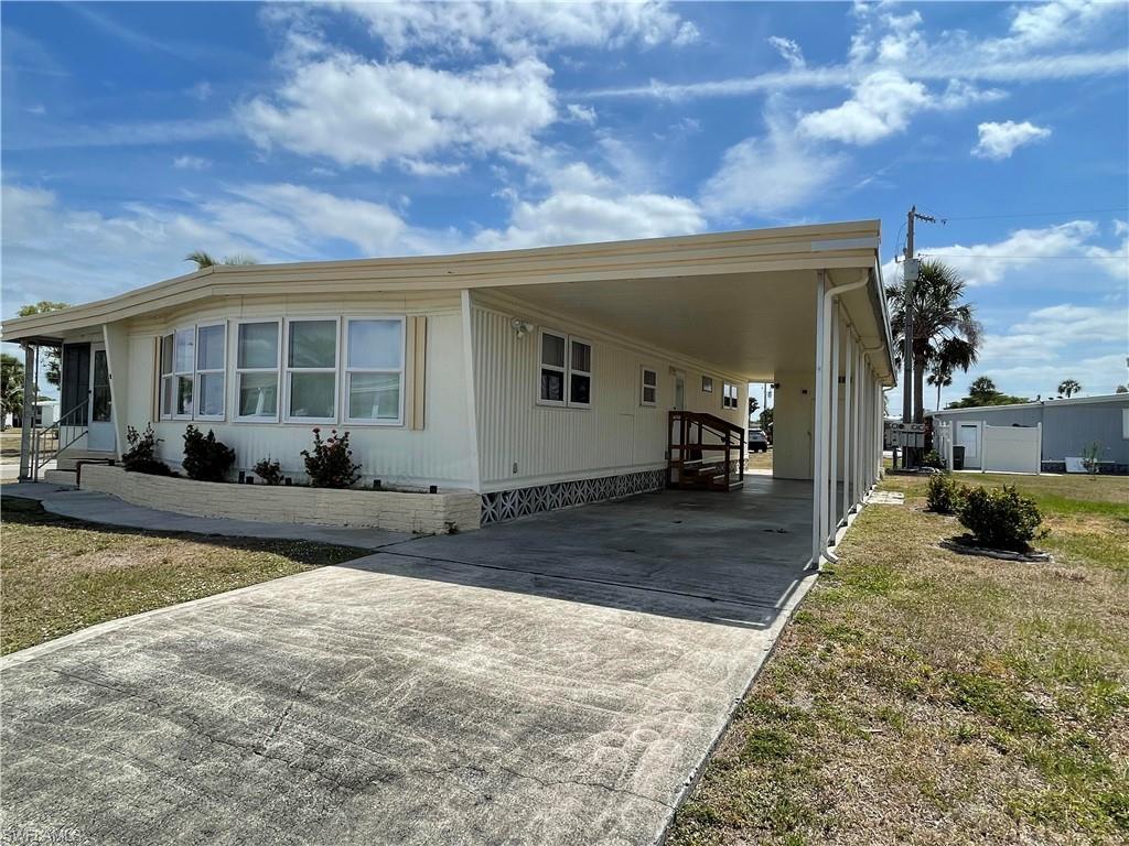 This spacious corner-lot home in Old Bridge Village, a vibrant 55+ community, offers comfort, convenience, and an unbeatable lifestyle. With an ownership share included, you’ll enjoy all the benefits of resort-style living just steps from your door. Inside, the home is move-in ready with two master bedrooms, generous closet space, and built-in cabinetry for easy organization. The new laminate flooring adds a modern touch, while the walk-in showers with safety handrails provide both style and practicality. Step outside and discover a community designed for connection and activity. Take your golf cart to the brand-new pool and spa, or spend the afternoon playing tennis, pickleball, bocce, basketball, or shuffleboard. For water lovers, there’s a boat launch, kayak area, and an 81-slip marina with immediate availability. The clubhouse, fitness center, and year-round events make it easy to stay active and social. When it’s time to unwind, head to Palm Point Park—8.5 acres of waterfront beauty where you can fish, picnic, or watch breathtaking sunsets over the Caloosahatchee River. Plus, you’ll be just minutes from downtown Fort Myers and two major airports, keeping everything you need within easy reach. This home blends relaxation, recreation, and community in one remarkable package. Come see it today and experience the lifestyle waiting for you at Old Bridge Village.