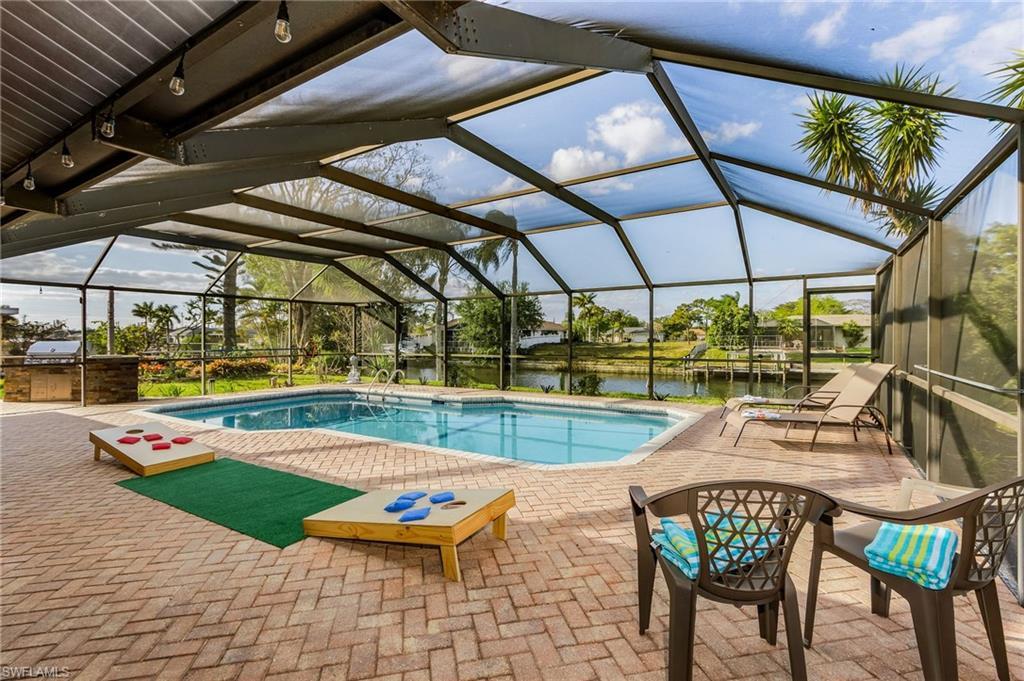 This is a VACATION RENTAL only. Owner will not consider an annual rental. Weekly rentals permitted. Villa Mahana is an updated 3 bedroom, 2 bathroom pool home that sits on a Gulf Access canal and sleeps 6 plus two additional with a sleeper sofa. Conveniently located in the popular SE area of Cape Coral, you are moments away from "Downtown" Cape Coral with many restaurants, bars, and shops. Living Room: Enjoy your favorite movies on the flat-screen TV and oversized, plush sectional sofa in the living room. Catch up on your reading in the family room, located next to the sliders that lead to the lanai. Unfold the sleeper sofa here to accommodate 2 additional guests. Kitchen/Dining Room: Villa Mahana's updated kitchen features granite countertops and stainless steel appliances. Equipped with all the cooking basics you could need, you are ready to create your favorite dishes for your friends and family. The attached dining room seats six; there is also additional room at the kitchen counter for those quick snacks in between meals. Master Bedroom/Bathroom: The master bedroom suite features a Queen-sized bed, a flat-screen TV (not featured in photos, but owner has since added it), and has plenty of storage space in the available dressers. The attached bathroom offers a walk-in shower stall and a granite countertop vanity. Guest Bedrooms/Bathrooms: Both guest bedrooms feature Queen-sized beds as well; One also features private sliders to the lanai. The two guest rooms share the guest bathroom, which doubles as the pool bath. It features a shower/tub combination and granite countertops. Pool/Lanai/Dock: You will no doubt spend most of your time by the pool! Villa Mahana's large lanai features a saltwater electric-heated pool with Northern exposure. Cook your meals on the grill at the outdoor kitchen and eat them at the dining table by the pool with room for four. Work on your Florida tan on the loungers available, or try your luck at a game of corn hole! Follow the stone pathway to the boat dock by the canal and lounge on a hammock while you watch the boats and sea life that make Cape Coral such a special place. Come and enjoy an unforgettable vacation in Florida. Book your trip to Villa Mahana today!