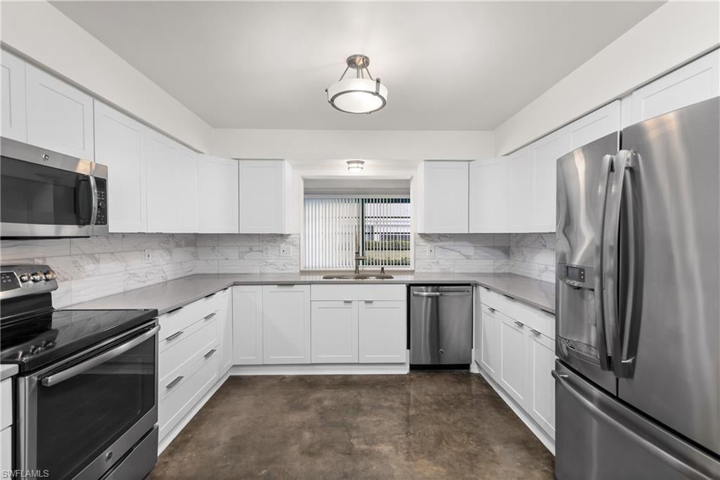 Conveniently located 2 BR, 2BA villa with over-sized 2 car attached garage. Villa has a new roof, gutters and fascia, along with new motors in the Florida room storm shutters. The newly remodeled kitchen will WOW you with new white cabinets, quartz counter tops , stainless steel appliances and beautiful backsplash. Bedroom windows and front door are impact-resistant ,as well as the garage door. Storm shutters are either electric or manual on all windows. This one-floor villa has polished concrete flooring for easy maintenance . Brandywine community is a +55 community conveniently located in South Fort Myers within close proximity to downtown, beaches, ball parks, shopping , restaurants, and theater. Brandywine offers 2 swimming pools, bocce courts, pickle ball courts, tennis courts, outdoor spa , and many organized activities to enjoy and participate in.