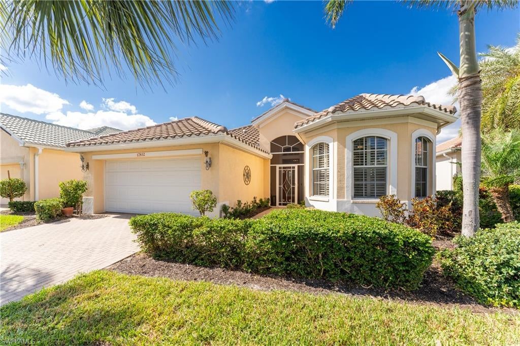 No detail has been overlooked in this brilliantly updated two bedroom plus den lakefront home, located in the coveted neighborhood of Courtside Landings in Burnt Store Marina. Nestled in the heart of the community, this home is just a short walk to Cass Cay waterfront restaurant, the Trading Post, the south marina basin, fitness, pickleball and tennis. As you approach this charming retreat, you are sure to appreciate the paver drive, pleasing landscape and the handsome new roof - installed in 2023. This stunning Lacoste floor plan is being offered partially furnished, so you can move right in and begin living the vibrant Florida lifestyle you’ve been dreaming of! You are sure to be impressed with the striking architecture from the moment you enter the inviting foyer. At the heart of the home, the freshly renovated kitchen showcases impeccable craftsmanship by Cornerstone Builders. Extensive white shaker cabinetry is adorned with Taj Mahal quartzite countertops, zellige tile backsplash, and sleek GE Café stainless steel appliances, including a double oven and induction cooktop with stainless hood…a true chef’s delight! Crisp white cabinetry is accentuated by decorative glass insets, pull out shelving and a handy touch faucet that add sophistication to this stylish space. The main living area exudes refinement, featuring crown molding, diamond-set tile flooring, custom drapery, and plenty of natural light through three sets of sliding doors. Step outside to the expansive paver pool deck, where a large pool with double waterfall, promises endless relaxation and entertainment, all set against the serene backdrop of the lake. The home’s thoughtful layout includes two bedrooms plus a den, providing flexible space for guests or a home office. Your guests will be delighted to stay in the attractive guest suite which enjoys abundant sunshine, laminate flooring and a tasteful bath updated by Cornerstone. The spacious primary suite is a private retreat with tasteful tray ceiling, laminate flooring and pool and pond views framed by sliding doors that lead out to the lanai. Two closets flank the hall leading to the luxurious en-suite bath with dual sinks and a spacious tiled walk-in shower. Full hurricane protection provides peace of mind, including convenient motorized storm screens on the lanai, and an upgraded hurricane grade garage door. Step outside and enjoy easy access to the community’s friendly social and recreational culture. The gated community of Burnt Store Marina boasts a 27-hole golf course, clubhouse with tiki bar, two on-site restaurants, tennis, pickleball, fitness center, and lots of great people! Come for the lifestyle…stay for life!