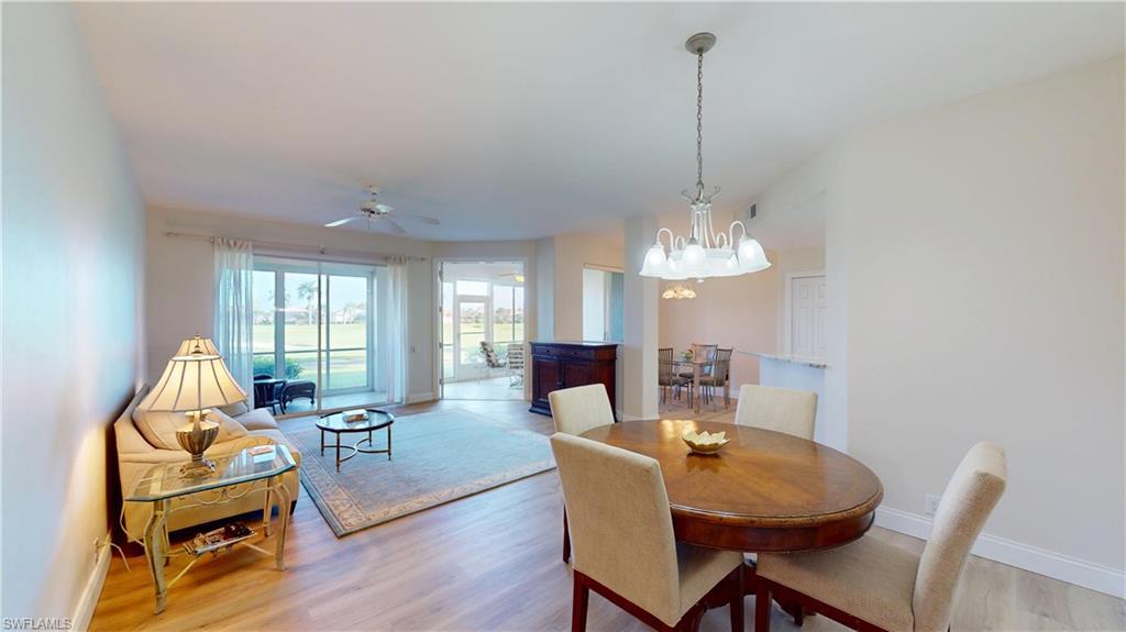 This beautifully maintained and furnished first floor 2 bedroom 2 bath 1 car garage “Lancaster” carriage home is located in the Lexington Country Club’s Golf Village (bundled golf). It is minutes from Sanibel and Ft. Myers Beach. Kitchen and bathrooms have been beautifully updated with new white cabinets and quartz countertops. Kitchen also has new appliances. Light luxury vinyl tile (LVT) was installed in all rooms (except entry and bathroom which have tile floors) in the past few years. The AC and water heater have both been replaced within the past 4 years. Enjoy the no-see-um screened lanai with acrylic sliders overlooking the 12th fairway and pond. The Lexington community offers all the features of an active lifestyle with the 18-hole championship golf course, 12 lighted tennis courts with designated pickleball courts, 6 heated swimming pools, a fitness center with onsite group classes, lending library, tiki bar/restaurant, beach area, clubhouse restaurant, 3 bocce courts; onsite coffee shop. You will be wowed by the beautifully maintained grounds and appreciate the onsite 24 hr security. The community also offers special events like Music Monday at the Island Club, Bingo at the Clubhouse and an abundance of clubs to join depending on your interests. Offered furnished so you can move right in and start enjoying the fabulous Lexington lifestyle! Just minutes from the beaches, RSW Airport, shopping, dining, and hospitals. Don’t forget to look at the virtual tour--either play it or click to walk-through each room.