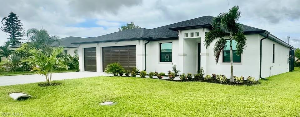 This brand new construction boasts four spacious bedrooms and two full bathrooms, perfect for comfortable living. The house features a stunning pool, serviced regularly for your convenience, and a screened lanai for those relaxing Florida evenings. Inside, you'll find beautiful tile floors throughout, complemented by granite countertops in the kitchen. The kitchen also comes equipped with stainless steel appliances, ready for your culinary adventures. The master suite includes a walk-in closet, dual sinks, and a luxurious bathroom with both a walk-in shower and a bathtub. The property also offers a three-car garage and a paved driveway, providing ample space for your vehicles. Situated on a corner lot, this house enjoys a generous lawn, maintained by included lawn service. This annual rental property is ready for you to experience the best of Florida living in this stunning Cape Coral home!