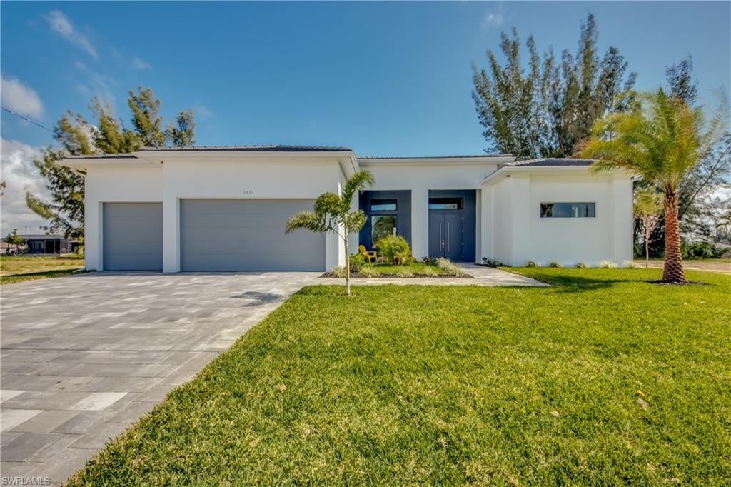 Check out this brand new custom canal home with heated pool plus spa and southern exposure! This contemporary home features 12' ceilings, 3 bedrooms, 2 bathrooms, a den/office, and 3 car garage. Huge amounts of custom upgrades like the 72" fireplace make this house stand out from the rest! Beautiful tile is featured throughout the home under its high ceilings. The kitchen is a modern masterpiece that's sure to attract plenty of attention. High-grade stainless-steel appliances including washer and dryer! The large kitchen island is perfect for cooking, baking, or entertaining friends and family. All windows and doors are impact resistant which means no shutters needed! The pool area features a heated oversized pool and spa. Located in SW Cape Coral this house is just minutes away from restaurants, shopping, Cape Harbor, Tarpon Point Marina, and much more! Brand new seawall!!! Pavered driveway and lanai. Great investment opportunity as a vacation rental or simply live in it yourself and enjoy the fabulous Gulf Coast lifestyle. Property management company eager to keep renting these houses out as vacation rentals if new owner so desires! *Pictures are of its identical sister house*