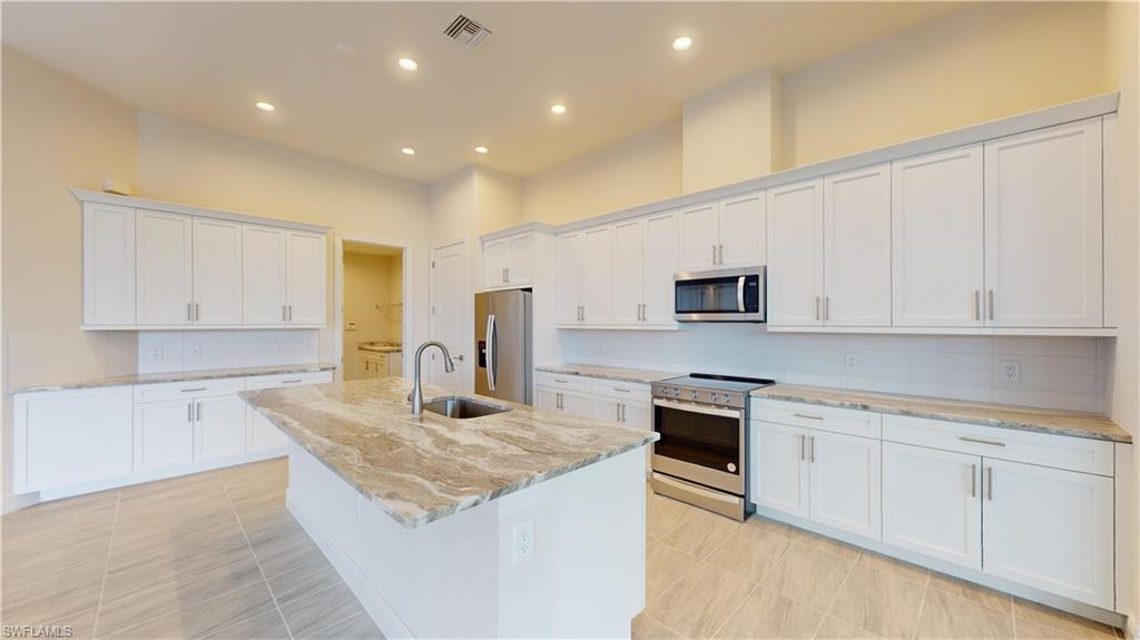 This brand-new Gulf-access home built by Frey & Son Homes combines modern luxury with the ultimate Southwest Florida lifestyle. Spanning over 2,300 square feet of thoughtfully designed living space, this move-in-ready residence is perfect for those who appreciate quality, style, and convenience. The open-concept great room boasts soaring 12-foot tray ceilings and 10-foot pocket sliders, creating an inviting, light-filled space that seamlessly blends indoor and outdoor living. The home features three spacious bedrooms and three beautifully appointed bathrooms, providing plenty of room for family and guests. The tandem three-car garage offers generous storage, while the expansive lanai is the ultimate outdoor retreat. Here, you'll find a custom-designed pool with a sun shelf, a relaxing spa, and ample space to entertain or unwind. Every detail has been carefully curated, from the hurricane-impact glass for added security to the upgraded tile flooring that elevates the interior design. The kitchen is a chef's dream, complete with 42-inch upper cabinets for extra storage and a full-house reverse osmosis water treatment system for pristine water quality. Outside, the paver driveway and pool deck enhance the home’s curb appeal, while pre-plumbing and wiring for a future outdoor kitchen allow you to customize your space further. This exceptional home also includes a state-of-the-art security system, ensuring peace of mind. With direct Gulf access and a blend of luxury and practicality, this home is the perfect gateway to the Florida lifestyle you've been dreaming of. Don't miss this rare opportunity to own a piece of paradise!