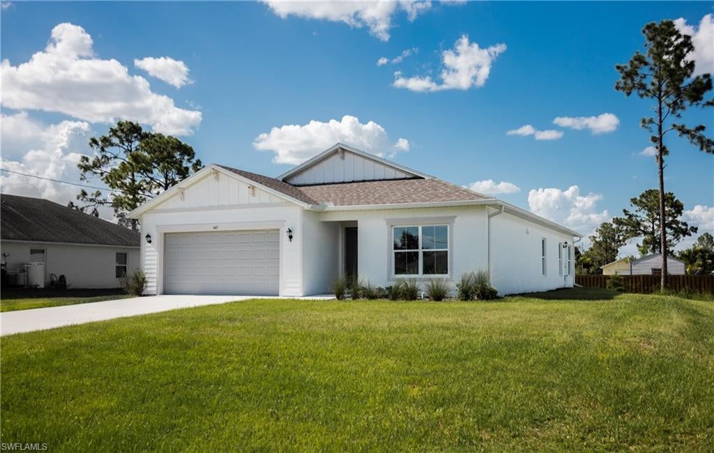 ***New construction, no wait, move in ready!*** The Sanibel II by Carpenter Homes is Green Certified. The kitchen has an oversized bar that flows into the living and dining area. Kitchen upgrades include soft-close 30" cabinets, Crema Pearl granite countertops, Moen Integra chrome faucet, garbage disposal, and stainless steel energy efficient appliances. Vaulted ceilings unveil a Florida Room, creating an indoor-outdoor haven. Additional upgrades include pendants over the kitchen bar and vanity fixtures in both bathrooms. Ceiling fans are included in every bedroom. Magnisi 18" ceramic tiles throughout. The Owner's suite showcases dual sinks, tiled Magnisi 8x12 white walls in the shower, and a large walk-in closet. The home boasts Magnisi 8x12 white upgraded tiled walls in in the second bath/shower, a Crema Pearl granite vanity, and Moen Chateau chrome faucets. Additions such as energy-efficient R-4.1 insulation on concrete exterior walls, Taexx tubes for pest control, and fabric hurricane shutters for every window are included. The landscaped yard is complemented by an irrigation system with a rain sensor. The 2-car garage is complete with a garage door opener and two remotes.