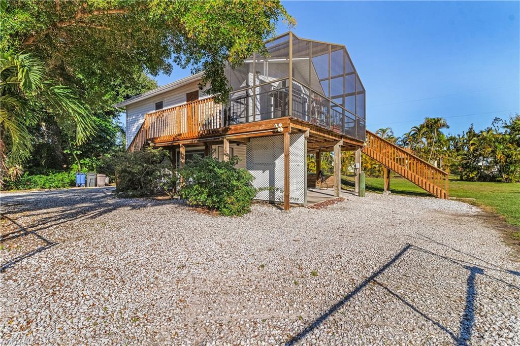 Newly remodeled island home with a very nice 2/1 upstairs and 1/.5 on the first floor. Make the downstairs a full bath and this could be a perfect in-law suite! It has no direct access to the top level. It's located on Pine Island Ridge and has had no flooding from any storms. Beautifully landscaped and fenced yard on two lots. Spacious screened porch where you'll spend most of your time. Two car carport beneath the home. New roof and hot water heater in 2023, Large shed for storing yard equipment and another smaller shed suitable for mancave or she-shed. New windows, flooring and kitchen cabinets. Countertops and backsplash are Portuguese porcelain tile.
