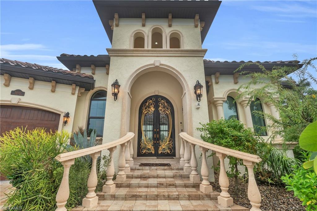 Nestled in the desirable canal community of Burnt Store Isles, this 2020-built custom home is a masterpiece of craftsmanship and elegance. Boasting 140’ on the water and a tranquil rim canal location, this residence offers the luxurious waterfront lifestyle you’ve been waiting for. Step inside through magnificent custom double arched doors made of wrought iron and glass measuring 10ft x 6ft. Once inside the grand foyer, you are drawn into the great room with 14’ cypress ceilings and an open floorplan ideal for entertaining. Grab a cocktail from the beautifully appointed wet bar or the perfect espresso from the built-in Miele coffee system with reverse osmosis water filtration system. The heart of the home is the stunning chef’s kitchen, with solid wood cabinetry, granite counters and a large island that boasts a quartz countertop with waterfall edges. The handmade copper kitchen sink and a striking copper range hood add an artistic touch to this gourmet kitchen. Throughout the rest of home, you will discover a world of bespoke details, from the hand-carved sinks that grace each bathroom to the etched glass showers that elevate your everyday routine. Wake up in the primary suite to the beautiful sunrise overlooking the lanai/pool area as well as the canal and mangroves for a private and relaxed feeling. Step into the luxurious primary bath, which boasts a roman walk-in shower with a hand carved glass surround, dual vanities featuring hand-blown glass sinks and beautiful granite countertops. Just off the bathroom is the large custom closet that has direct access to the spacious laundry room, making laundry a breeze. Perfectly accommodating overnight guests, the second primary suite in the guest wing of the home offers a spa-like retreat, complete with a large custom walk-in closet, luxurious steam bath for ultimate relaxation and direct access to the lanai. Outside, the expansive lanai beckons you to enjoy the Florida lifestyle with a private pool, perfect for lounging or entertaining. The lanai is stunning with its French style Leonardo stone floor surrounding a custom salt-water pool boasting two waterfalls and an outdoor kitchen. Beyond the lanai, a canal-front setting awaits, complete with a private boat dock and an impressive 16,000-pound boat lift, making it a boater’s paradise. Additional features include: Hurricane impact windows and doors, Louis Vuitton Octopus mailbox, 4-zone Amana AC, Thermador and Miele appliances, Toto Japanese bidet/toilets, water saving sprinkler system, climate controlled garage, 20KW Kohler whole house generator with a 500 gallon underground storage tank. This home’s perfect blend of luxury, functionality, and artistic detail creates an unrivaled living experience in one of Punta Gorda’s most sought-after waterfront communities. This is a must-see property, schedule your viewing today and start living in luxury.