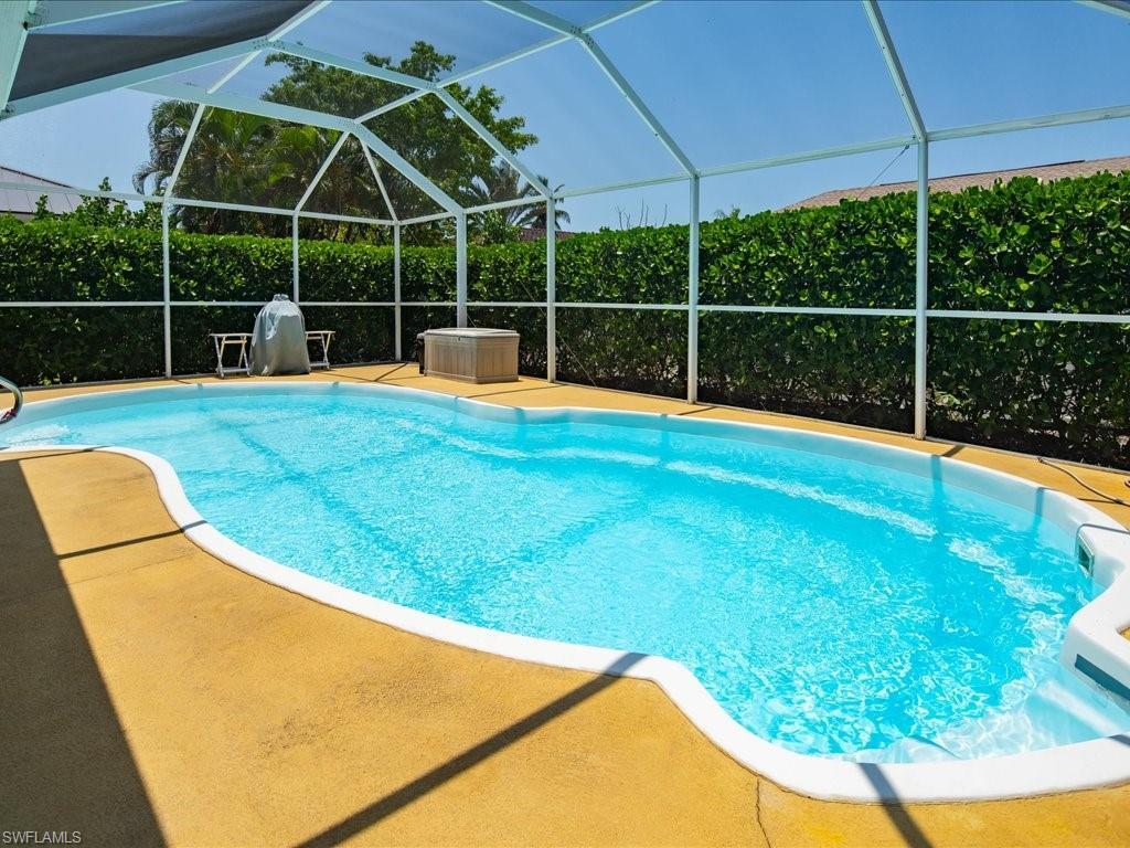 Enjoy relaxing and watching the beautiful Marco Island Sunsets from your oversized screened in lanai and pool area. This home is situated close to everything Marco has to offer! Tommy Barfield Elementary and Marco Island Middle School are just a short walk or bike ride away. The pristine Marco Island Crescent Beach is only 1 mile away from your front door. This 3 bedroom 2 bath home lives larger than expected with the cathedral ceilings and bright windows. This home had a new roof in January 2018, and within the last 6 years, a new water heater, new A/C, new irrigation system and beautiful landscaping with a privacy fence in the back yard. The home was completely replumbed in 2009! Don't miss your opportunity to own a piece of Marco Island Paradise!