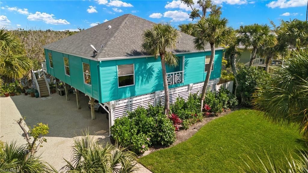 Beautifully remodeled, near beach duplex with 2 bedrooms and 1 bath on each side with adjoining deck and a shared screened lanai overlooking the Sanibel River. Freshly painted inside and out, new roof, new hot water heaters, new impact front doors, new exterior stairs and deck surrounded by new lushly landscaped yard with Mosquito Nix system, irrigation system and a new driveway. Each side offers new tile plank floors, new kitchen cabinetry, new stainless-steel appliances, new quartz counters and fixtures. New washer & dryer. New fans throughout. Bathrooms include new vanities with quartz counters, custom showers with glass enclosure. Great island location, peaceful surroundings, close to the beach and enjoy great wildlife and bird watching right off your back deck overlooking the Sanibel River. Under house parking for both sides.