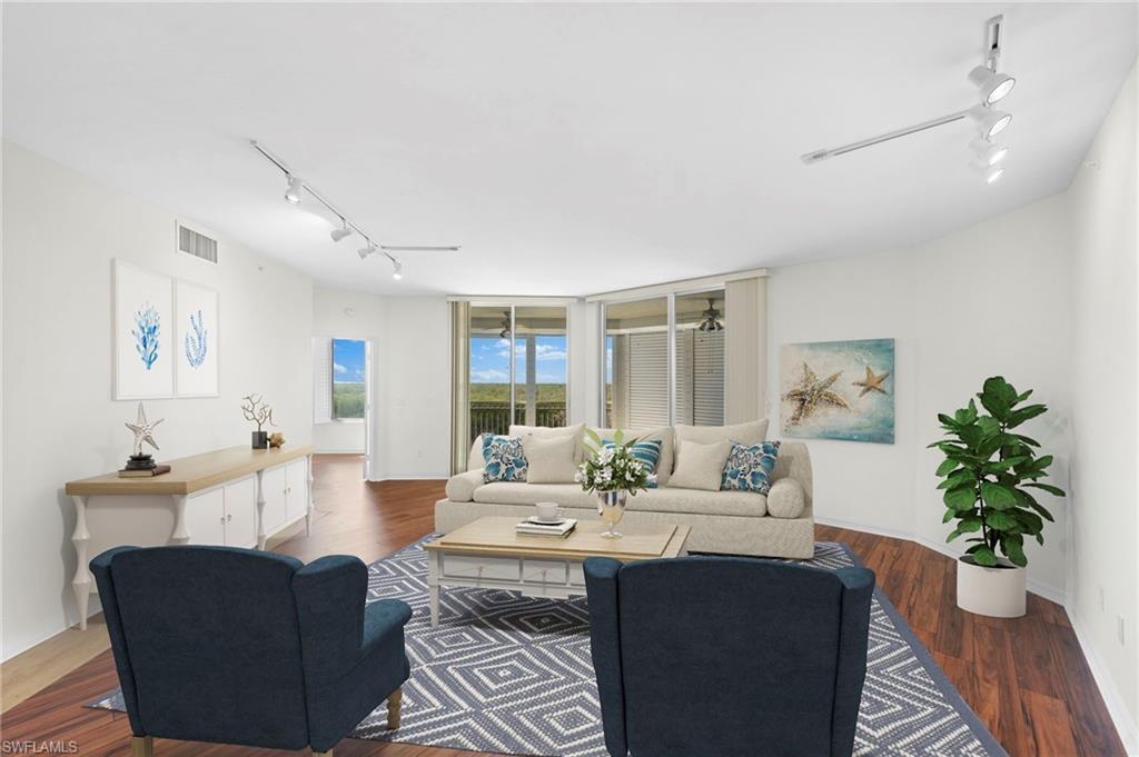 Indulge in the epitome of Naples Senior Living. This stunning 1,752 square foot, 2-bedroom, 2-bathroom condo offers a serene retreat with light neutral colors, classic laminate wood flooring and a one car garage. Enjoy breathtaking sunsets over the Gulf from the comfort of your living room or private balcony. As a resident of the active adult community of Arbor Trace, you'll have access to a wide range of exceptional amenities, including the 17th-floor Top of the Pointe Club overlooking the Bay and Gulf, fitness centers, swimming pools, gourmet dining, convenient transportation services, on-site assisted living, and 24/7 emergency monitoring. Optional housekeeping and maintenance services are available for added convenience. Experience the best of Naples Senior Living at Arbor Trace.