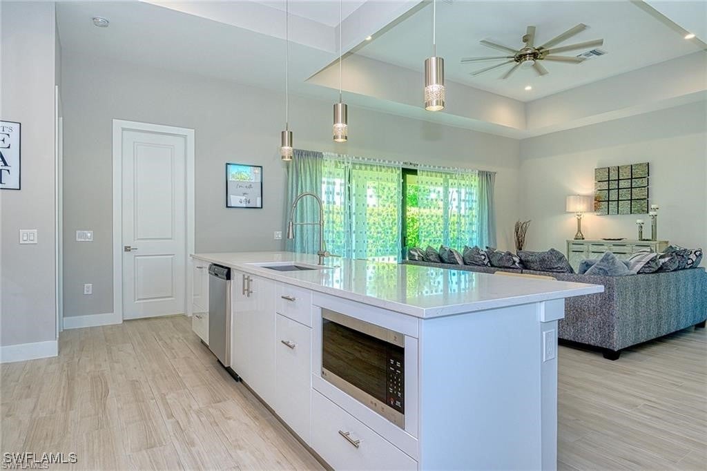 New Construction To Be Built Canal-Front Home with Gulf Access! Discover the waterfront lifestyle in this stunning New Construction single-family home, perfectly located on a canal with boat dock and direct Gulf access, with a completion date in 2026 This 3-bedroom, 3-bathroom home combines style and comfort with elegant details throughout. Interior Highlights: Gourmet Kitchen: Features a large island, stainless steel appliances, quartz countertops, and a striking backsplash, perfect for culinary adventures. Elegant Bathrooms: Each bath includes floor-to-ceiling tile, frameless glass shower doors, and the master bath offers dual vanities, an oversized walk-in shower, and a separate tub. Stylish Living Room: Showcases a tray ceiling design, plank tile flooring, and recessed LED lighting throughout the home. Additional Features: Includes an office/den and a two-car garage. Outdoor Oasis: Step outside to enjoy a spacious covered lanai with ceiling fans, an outdoor kitchen, and your dream pool and spa—all perfect for entertaining or relaxing by the water. Customize your finishes and make this home truly yours! Conveniently close to beautiful beaches, popular restaurants, and great shopping. *****Photos are for illustration purposes only and from a previously completed home.*******