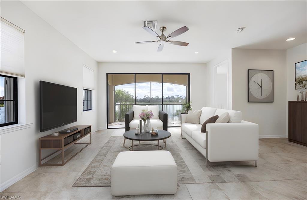 Welcome to this spacious 3-Full Bedroom End-unit Condo with sparkling Southern Lake Views and a charming fountain. The numerous Large Windows fill the condo with light in every room. Freshly Painted, this distinctive home features an Expanded Floor Plan, adding Extra Square Footage to the master closet and bath. Enjoy the bright, Open-Concept Layout with a Modern Center Island, Stainless Steel Appliances, newer Bosch Dishwasher, walk-in Pantry, All-Tile Flooring, Volume Ceilings, 8' Doors and a Culligan Water Softener. The 2nd floor unit also includes an Attached 1-car Garage and accordion Storm Panels for peace of mind.