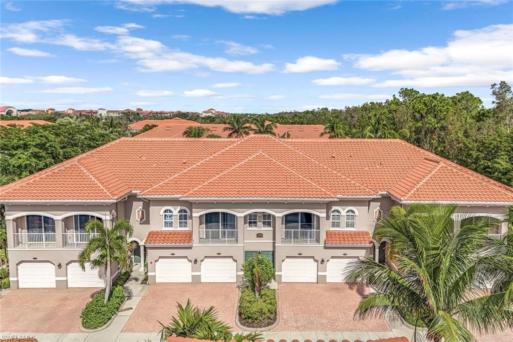 One of the best pool & club views in Mirasol at Coconut Point. Fantastic location within walking distance to Coconut Point shopping, dining and entertainment. This 2 + den or 3 bedroom, 2 bath, with private attached garage is a second floor unit that has been freshly painted throughout and features Impact glass windows and doors, ceramic tile throughout living areas and newer LVP flooring in the bedrooms. The 3rd bedroom is a Den/Flex space with glass French doors ideal for the home office or guest bedroom. The gourmet kitchen features quality wood cabinetry, granite counter-tops, SS appliances and breakfast bar ideal for entertaining. The spacious lanai offers an entrancing tropical feel with a resort view and waterfall sounds. Close to Bonita Beach and the Bonita Estero Rail Trail (coming soon) New water heater in 2019, New Central Air in 2021, New LVP in 2021 and New Refrigerator in 2022. Just painted throughout in January 2025, tile floors just steamed cleaned.