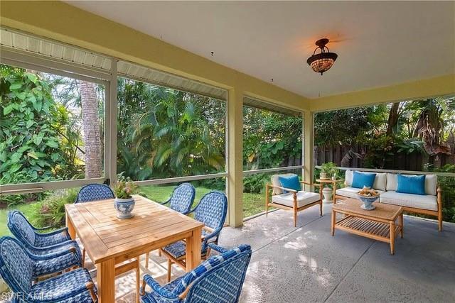 This charming home is the ideal destination for those seeking a bright, beach bungalow for a seasonal vacation spot or a full time residence. Naples Park offers proximity to multiple shopping and dining options, including Mercado, Waterside Shops, Whole Foods and Trader Joe’s. Imagine trips to the famed white sand beaches of Vanderbilt or Delnor Wiggins Pass being less than 7 minutes away by car. When you enter the home, you can feel the warmth and charm that can only be created when a property has been handed down through three generations of family members. This 3 bedroom, 2 bath home was removed from the market to receive new flooring and fresh interior paint, a then again for a new roof in 2024. The high vaulted ceiling is another great feature, not found in many other Fixer Upper homes in this area. Incredibly well maintained, it offers the next owner unmitigated potential to create their own perfect version of home with only cosmetic updates. The backyard feels private, enveloped in lush tropical foliage, but don’t be fooled, at 38 feet deep it offers enough room for a pool, outdoor lounging area or an extended lanai. The home remains damage free after any & all hurricanes since it’s construction in 1990. The new roof includes a transferable warranty. Priced to move, this home presents an excellent opportunity for growth on investment.