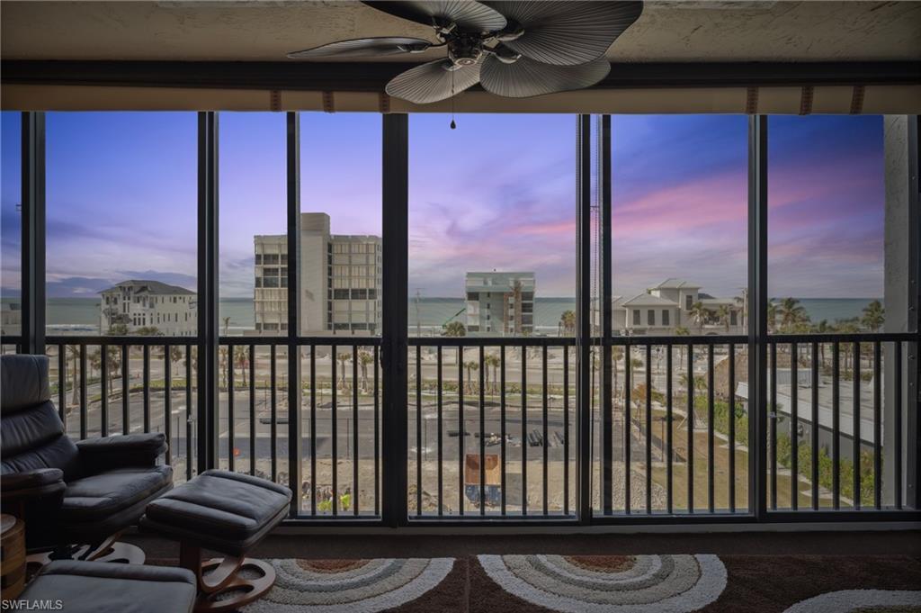 A Waterfront Oasis! Capture panoramic sea views from the Gulf of Mexico to the Bay on your 4th floor westerly wrap around corner balcony. Well views are the highlight; you will also enjoy a large open floor plan with ample storage and split bedrooms. An oversized primary suite with attached walk-in closet and bath. Wake up each morning with the allure of the waves and catch a stunning Florida Sunset each evening. This property is located just across the street from the beach and provides deeded beach access. The condominium has recently undergone several renovations including a New Roof, New Elevators, Brand New Community Room with attached Patio and Grills, Refurbished Pool, Freshly Painted Exteriors and much more, already completing the newly passed structural reserve study! Many other amenities to enjoy including a community pool, Extra Storage Space for your beach toys, Kayak/Canoe storage racks, Fishing off the Pier and when available BOAT DOCKS for purchase. Coming Soon Brand New Pickleball & Tennis Courts. Active Community holds many social events. A stone’s throw from popular destinations including Lovers Key State Park, Fort Myers Beach, Docs Beach House and more. Close to shopping, grocery stores, fine dining and the airport. Rentals allowed with a 30 day min. Furniture including, what more are you waiting for?