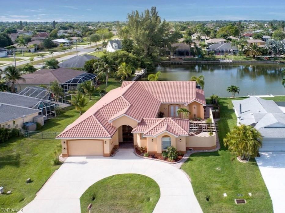 **Exquisite Custom-Built Waterfront Courtyard Hacienda** Experience the ultimate in luxury living with this stunning custom-built waterfront hacienda, where every sunset becomes a breathtaking spectacle. This unique 3 Bedroom and 4 Bathroom home welcomes you with an exotic Spanish courtyard, setting the stage for a tranquil retreat. The separate ensuite 3rd bedroom casita offers private guest quarters, perfect for hosting family and friends. As you enter the main home, you’ll be greeted by soaring volume ceilings and double glass doors with mini blinds that frame the spectacular southern views of the 240-foot wide canal. The gourmet kitchen is a chef’s dream, featuring stainless steel appliances, elegant granite countertops, quality wood cabinetry, and a well-lit walk-in pantry. Each split bedroom is designed for privacy and comfort, complete with ensuite bathrooms featuring floor-to-ceiling tile and built-in closets. The interior also boasts a built-in and lit bar, perfect for entertaining guests. Step outside to discover an outdoor kitchen and a massive built-in brick BBQ, ideal for alfresco dining. The expansive wood-beamed open lanai provides a perfect space for relaxation, while a built-in fire pit in the courtyard with seating invites cozy gatherings under the stars. Located in a highly desired neighborhood with quick access to shopping, entertainment, schools, hospital and medical centers, restaurants and Ft. Myers. This remarkable property presents the perfect fusion of luxury, comfort, and endless possibilities. Don't miss your opportunity to make this one-of-a-kind waterfront dream home yours.—schedule your private showing today!
