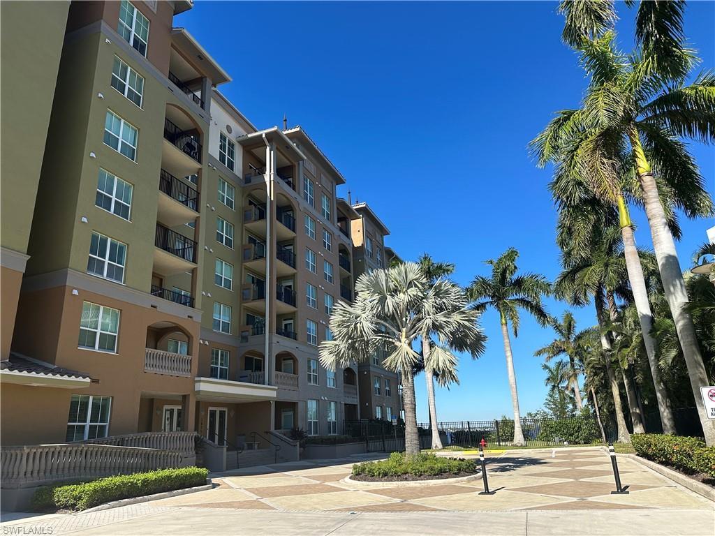 Welcome to the upscale and serene waterfront condominium. Situated in the Riverfront District of Fort Myers. It offers a vibrant city life in an access controlled community. Convenient Trolley service is offered to the downtown area. This beautiful condo has 10 ft ceilings and 8 ft doors, Marble Travertine Tile throughout the home., and 2 suites their own full bathrooms. Both walk-in closets have extra shelves for storage. The appliances that have been replaced are the refrigerator in Feb 2019, washer and dryer in April 2019, the water heater in Nov 2018, the microwave in March 2023 and a Trane air conditioner in May 2020. All 3 bathrooms have chair-high toilets. The community offers a beautiful pool with river views, a grilling area, spa, exercise room, and a library. You have 2 deeded parking spots, one covered and one uncovvered on top of the garage. You also have a large storage bin available to you. The condo is equipped with a Phyn water monitoring system that alerts you of any leaks, that is controlled from anywhere by an app on your phone. With this excellent location close to the historic downtown area with quaint shops and great restaurants and shopping. This community is Fully Funded with a great Reserve. A perfect area to enjoy the Southwesst Florida Lifestyle.