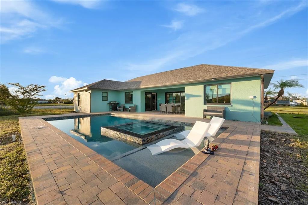 Start living the Florida dream in this exceptional home featuring an ozone pool and spa. Perfect for anyone seeking a blend of comfort and outdoor luxury, this bright, airy home offers an open split floor plan, making it an ideal retreat. The property boasts **TOTAL IMPACT-RESISTANT WINDOWS AND SLIDERS**, a **brand-new roof (2023)**, vaulted ceilings, modern stainless appliances, sleek countertops, a 2-car garage, and a fenced backyard—perfect for your furry friends. Unwind while enjoying serene views of the Embers Canal. With your own dock, you can effortlessly launch a kayak or pontoon boat for breathtaking sunset cruises. With quick access to Pine Island, Punta Gorda, Fort Myers, Fort Myers Beach, and Sanibel, this home truly offers the best of Florida living.