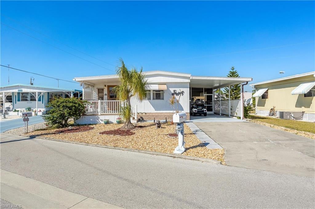 Welcome to your new home in Carriage Village! This charming manufactured home offers 2 bedrooms, 1 bathroom, and the rare opportunity to own your land. With low association fees, you can enjoy all the benefits of community living without breaking the bank. The A/C was replaced in 2020, ensuring your comfort year-round. The home comes fully furnished, so you can move in and start enjoying your new space right away. A new roof in 2021 and a new water heater in 2022 provide peace of mind for years to come. And for added convenience, an optional golf cart is available for exploring the neighborhood or hitting the links. Don't miss out on this fantastic opportunity to own a piece of paradise in Carriage Village!