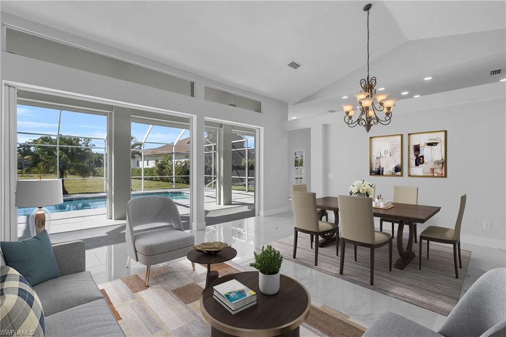 What a location! Walk, bike, or golf cart every day to Tarpon Point for dinner and a sunset, shopping, a fishing charter, or a dolphin watching boat tour! There’s a special path for quick access to the marina, waterfront shops, and restaurants. Every inch of this pool home with SW rear exposure (sunsets) has been meticulously renovated and updated! NEW Flat Tile ROOF, New ELECTRICAL Panel and Surge Protector, New 40 Gallon WATER HEATER, Newly Resurfaced Pool & Pool Tile and Pool Pump, and so much more. The exterior is freshly painted and the pool was recently resurfaced and updated with new tile. The home has hurricane protection all around, including electric shutters across the back of the large lanai for added peace of mind. Inside, the home features a full repipe, newer A/C (2019), updated electrical panel, and all-new trim, baseboards, and pocket doors. The redesigned kitchen offers 42” soft-close cabinets, stainless steel appliances, granite countertops, and a counter-height island, while the master suite showcases an extended walk-in shower, marble vanities, and defogging mirrors. The guest bathroom has also been fully updated with new fixtures, tile, and a resurfaced tub. Additional upgrades include a professionally sealed attic, new water heater, updated laundry room with shaker cabinets, and modernized light switches and smoke detectors. Every update was completed with proper permitting by licensed contractors. With a very low transferable flood policy and an unbeatable location, this home is ready for you to enjoy the best of Southwest Florida living.