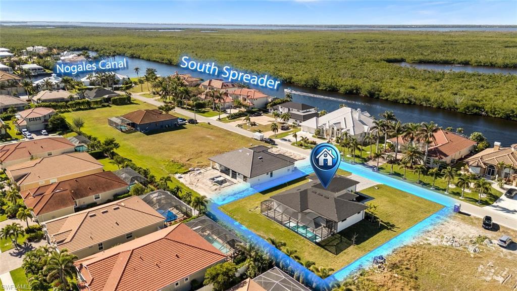 Discover this stunning triple lot, 4-bedroom, 4.5-bathroom home in the heart of Southwest Cape Coral, where elegance meets functionality. Every bedroom boasts its own private ensuite bathroom, making this property an exceptional choice for families or as a lucrative short-term rental opportunity. The open-concept design features expansive high ceilings and a seamless flow between spaces. The kitchen is a chef’s dream, showcasing quartz countertops, stainless steel appliances, and white solid wood shaker cabinets with 42-inch uppers. Luxury vinyl plank flooring extends throughout the living areas, complemented by stylish tile in the bathrooms. The master suite offers ultimate comfort with two walk-in closets and a spa-inspired bathroom, complete with a walk-in shower, a separate soaking tub, and dual sinks. Step outside to your private oasis! The backyard features a sparkling pool and spa, a delightful splash pad, and a fully screened enclosure for year-round enjoyment. Conveniently, there’s a door leading directly from the pool area to a bathroom, ensuring easy access for guests. The epoxy-finished 3-car garage adds a touch of sophistication and practicality. Situated in a neighborhood surrounded by multi-million-dollar homes, this property is minutes away from Cape Harbour Marina, beautiful beaches, shopping, parks, and dining. Its prime location and thoughtful layout make it ideal for vacationers and discerning buyers alike. Don't miss this rare opportunity to own a slice of paradise in one of Southwest Florida’s most desirable areas!