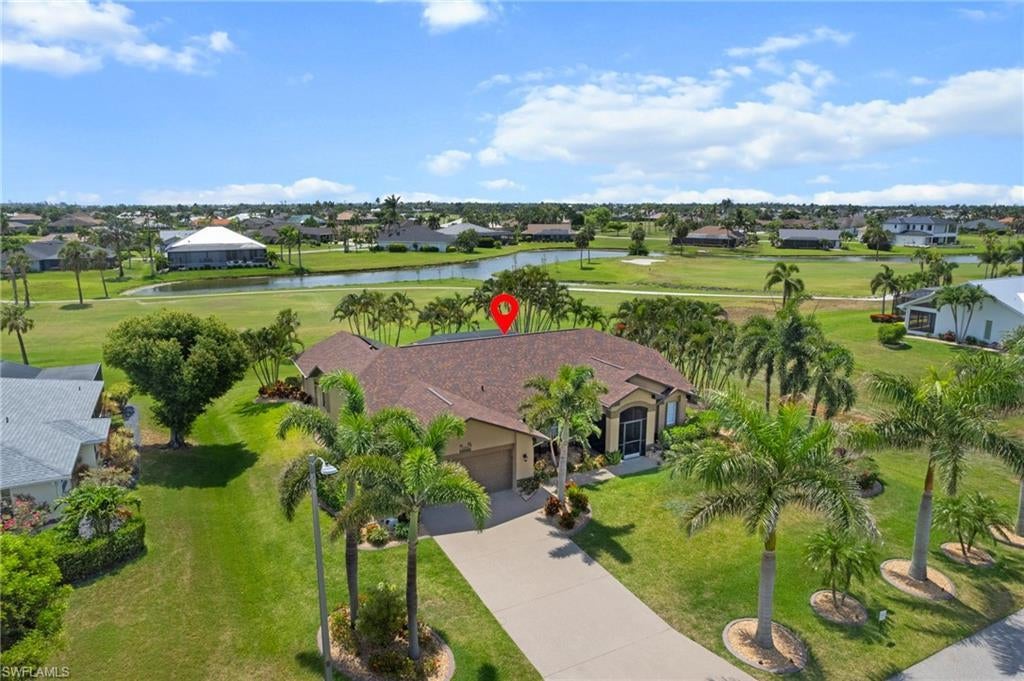 Luxurious lakefront pool home where you’ll enjoy scenic golf course living without mandatory golf fees in one of Cape Coral‘s most sought after gated communities. Golf on the 27 hole Cape Royal championship course. This 2303 ft.² living area home features spectacular views of the lake and green. The great room floor plan features a recently renovated island kitchen, an outdoor kitchen with covered living space with a large wall mounted TV and fireplace. Golf enthusiasts will appreciate the convenience of an attached golf cart garage large enough for two carts. This home has been meticulously maintained and upgraded throughout and is move in ready for you to enjoy the benefits of the country club lifestyle, encompassing the serenity of the surroundings, the recreational opportunities, and social camaraderie. Enjoy incredibly low monthly expenses with solar power that keeps your electric bills around $23 per month and the community's low HOA fees.