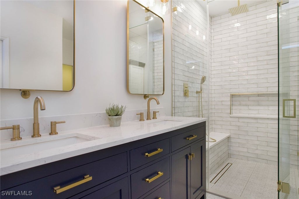 Stunning newly renovated three-bedroom, two-bath coach home in Lynx Pass at Hunters Ridge Golf & Country Club! Move-in ready and meticulously remodeled in 2022. The open, eat-in kitchen has quartz countertops, soft-close white shaker cabinets, designer lighting and stainless steel KitchenAid appliances. The home features luxury vinyl wood plank floors throughout, and new impact windows and sliders. The beautiful spa-like primary bath has quartz countertops, dual sinks, matte gold hardware and an elegant glass shower. The two guest bedrooms are spacious with large closets. The guest bath has a glass walk-in shower with stylish porcelain tile. The home has a new, oversized, elevated washer and dryer, new air conditioner and water heater. The attached one-car garage has built-in storage and pebbled epoxy floors. The screened-in lanai overlooks the golf course’s 15th hole. Hunters Ridge Golf & Country Club has an 18-hole, par 72 golf course designed by Gordon Lewis. There are two lighted Har-Tru tennis courts, eight lighted pickleball courts and four lighted bocce courts. The club also has three state-of-the-art golf simulator studios and a 10,000-square-foot activity center with a state-of-the-art fitness room. It also has a 2,500-square-foot pool and spa surrounded by a large sun deck and a poolside snack bar. The club has an array of social activities including live entertainment, holiday parties, gourmet dinners, pub nights, and mix and mingle nights. There is a casual grill room, an outdoor Club Patio Bar and a newly designed formal dining room. This home includes a social equity membership.