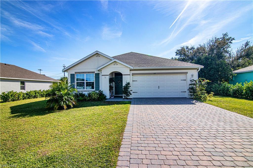 Your paradise home is here. This centerally located home has it all . Custom touches abound from custom light fixtures ,and ceiling fans to glass shower doors and crown molding in the kitchen.The kitchen is perfect for the aspireing chef with plenty of counter space as well as the large island. This home will not disappoint. City water and sewage .Centrally located right near Veterans Blvd and Santa Barbara Blvd with ALL ASSESSMENTS PAID!!! Home comes with 36” Designer White kitchen cabinets with hardware, quartz kitchen counters, solid surface bathroom counters, 18” tile everywhere except the bedrooms, carpet in bedrooms, stainless kitchen appliances, white washer and dryer, blinds on all windows except for slider, ceramic wall shower tile in both bathrooms, paver driveways and lanai, covered lanai, full irrigation system, electric garage door with opener, architectural shingle roof. The home is not in a flood zone and doe's not require flood insurance.If you are ready to own your own piece of paradise then this is one home you wont want to miss.