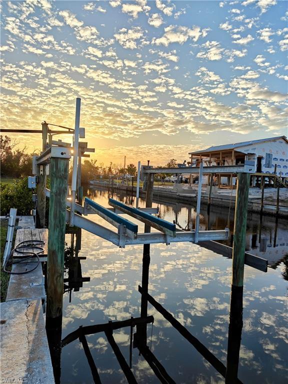 This seller is motivated to sell. This property not only has access to the canal directly behind the home, but it also has a dock and lift on the main canal. There is water on 2 sides! There are no bridges and no lifts to go through. It is about 10 minutes to the open water of Pine Island Sound. You are close to some great fishing, boating and beaches. Captiva, Sanibel, Boca Grande and Caya Costa to new a few. This active 55+ community will have you busy everyday. Amenities include a heated pool and spa. There is shuffleboard, bocce ball, pickleball. There is a community room for indoor activities. There is also a community boat ramp and fish cleaning table. For $50.00 a year, you can store your trailer, RV or extra toys in the storage yard. This home comes fully furnished- bring your fishing rods and toothbrush!