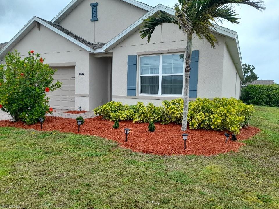 Includes 28 solar panels and a back up storage unit so your electric bill is $zero!!!! 4 bed/ 2 bath home on Large CORNER LOT equipped with SOLAR PANELS and STORAGE BATTERY. Solar was a $60K+ upgrade to this house - seller will pay off the system at the close and transfer it to the new owner!!!! The Home was built in 2020 and features an open floor plan with split bedrooms and a lovely / private back yard with extended paved patio with a large retractable covered awning and lush landscaping. Kitchen features cherry wood cabinetry, corian countertop, retro black/white backsplash, stainless appliances with PLENTY of countertop and storage space and a Walk-In pantry. NO FLOOD insurance required - NO CDD FEES - LOW HOA FEES (which includes 900MB high speed internet). Landscaping in front of home recently refreshed. Entrada is a gated community offering resort-style amenities - basketball, bocce, tennis or pickleball, state-of-the-art gym, community pool, clubhouse and lots of scheduled activities. With flexible rental restrictions, this property is an excellent investment or seasonal home. Close to the beaches and downtown Fort Myers river distict.