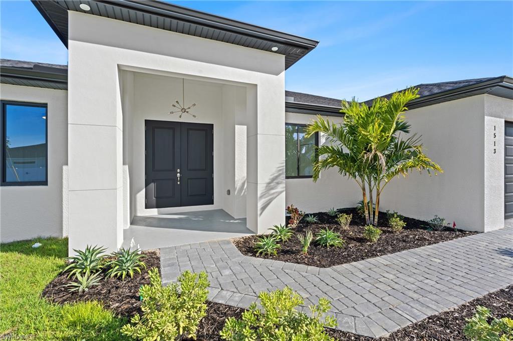 This is not your average builder-grade home! Welcome to this stunning and spacious brand-new 4-bedroom, 3-bathroom home, offering just under 1,900 sq. ft. of modern living on a waterfront canal — and best of all, NO flood zone! Ideally located near Del Prado North and Pine Island, you'll enjoy quick access to restaurants, shopping, grocery stores, and major roads, making daily living incredibly convenient. CO is ready—this home is move-in ready! From the moment you walk in, you’ll notice the thoughtful upgrades that set this home apart. Designed with modern elegance, it features porcelain tile throughout, high ceilings, and a light, airy color palette that enhances the spacious feel. The gourmet kitchen is a true centerpiece, boasting quartz countertops, a large waterfall island, sleek stainless steel appliances, gray cabinetry, a designer backsplash, and modern lighting—blending style and function beautifully. Step outside to your under-truss lanai, perfect for relaxing or entertaining. The spa-inspired bathrooms are equally impressive, with fully tiled showers and a glass enclosure in the primary suite, while the guest bath offers a luxurious soaking tub. The smart floor plan includes two en-suite bedrooms, ideal for privacy, multi-generational living, or even as a rental income opportunity. Whether you're looking for a full-time residence, a seasonal retreat, or a high-performing rental investment, this home checks all the boxes. Situated on a freshwater canal, with a paver driveway, a double-car garage, and lush professional landscaping, this home delivers incredible curb appeal in a rapidly growing neighborhood with new construction all around. City water is already connected. Don’t miss your chance to own a new move-in-ready home. Schedule your private showing today!