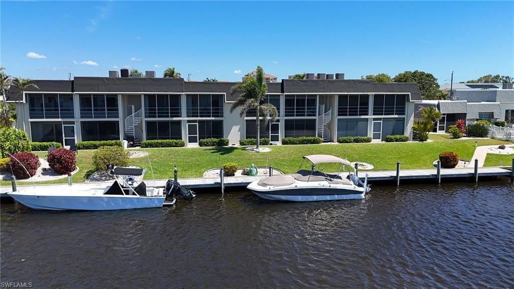 HUGE PRICE ADJUSTMENT!!! WATERFRONT LIVING AT ITS FINEST WITH BEST VIEWS! RENOVATED FIRST-FLOOR CONDO IN THE ANCHORAGE. Sailboat access, 200’ wide canals, and minutes to open water! Welcome to The Anchorage, a hidden gem in Southeast Cape Coral offering 800+ feet of prime waterfront, a community boat dock, and a fishing pier—perfect for boaters, kayakers, and anyone who loves being on the water! This 55+ community is situated just off the coveted Beach Parkway area, a short stroll from the soon-to-be revitalized Jaycee Park along the Caloosahatchee River. This completely renovated 2-bedroom, 2-bathroom first-floor condo is a true showstopper. With 1,117 square feet of thoughtfully designed space, it offers stylish laminate flooring throughout, a bright and airy layout, and a spacious screened-in lanai with hurricane-rated sliders (coming soon!) and ample storage. Step outside and take in the stunning canal and dock views, where you can watch boats cruise by and dolphins play right from your own backyard. The kitchen features modern cabinetry, sleek granite countertops, and stainless steel appliances, while the updated bathrooms boast contemporary finishes. The primary suite offers a private retreat, and the in-unit laundry area adds everyday convenience. Plus, this condo includes a covered carport space, keeping your vehicle protected. Living here is all about embracing the Southwest Florida dream with resort-style amenities and a vibrant social atmosphere. The expansive heated pool overlooks intersecting canals, creating a picture-perfect spot to soak up the sunshine. The clubhouse features a dance hall-size event space, kitchen, and a well-equipped tool workshop—a rare find in condo living! Whether you're into social gatherings, potlucks, cocktails by the pool, or tackling a DIY project, there’s something for everyone. Dock space is first come, first served, making this an incredible opportunity for boating enthusiasts. Plus, the HOA takes care of exterior maintenance, basic cable, water, and sewer, so you can focus on enjoying your surroundings. And the best part? Jaycee Park is undergoing a massive transformation! Set to reopen in Summer 2025, this stunning waterfront destination will feature new riverfront walking trails, upgraded picnic and recreation areas, expanded green spaces, and breathtaking water views—right outside your door! With direct sailboat access to the Gulf, world-class fishing, and endless scenic waterways, The Anchorage is the ultimate escape for those seeking affordability, boating access, and an active lifestyle. Don’t miss out—schedule your private tour today! NEW AC just installed