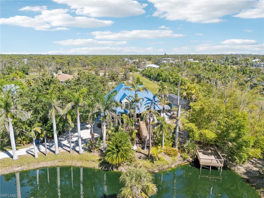 Discover your own private slice of paradise with this one-of-a-kind, 3-level Florida retreat situated on over 2 acres of lush, tropical landscape with serene pond views. This unique 3-bedroom, 3.5-bath residence offers the perfect blend of charm, comfort, and functionality. Recent upgrades include a brand-new dock installed in 2024, a screened saltwater pool with paver deck added in 2023, and both electric and manual storm shutters installed in 2019. The main level features a spacious living room with vaulted ceilings, a bright dining area with French doors opening to the screened back porch, and a beautifully appointed kitchen with white glass-front cabinetry and granite countertops. The primary suite is conveniently located on the main floor and includes French doors to the screened front porch, a luxurious ensuite bath with a large double shower, dual sinks, walk-in closet, private laundry, and access to the back porch. Upstairs, an open loft leads to two additional bedrooms and a full bath. The finished lower level offers a flexible living space with a full bath and kitchenette—perfect for guests, in-laws, or rental potential—as well as a large workshop and extra storage. Enjoy peace of mind with a combination of both electric and manual shutters. Outdoors, enjoy multiple screened porches, two fenced dog areas, and plenty of room to relax or entertain. Whether you're lounging by the pool, casting a line from your dock, or enjoying the peaceful natural setting, this home invites you to experience the very best of Florida living.