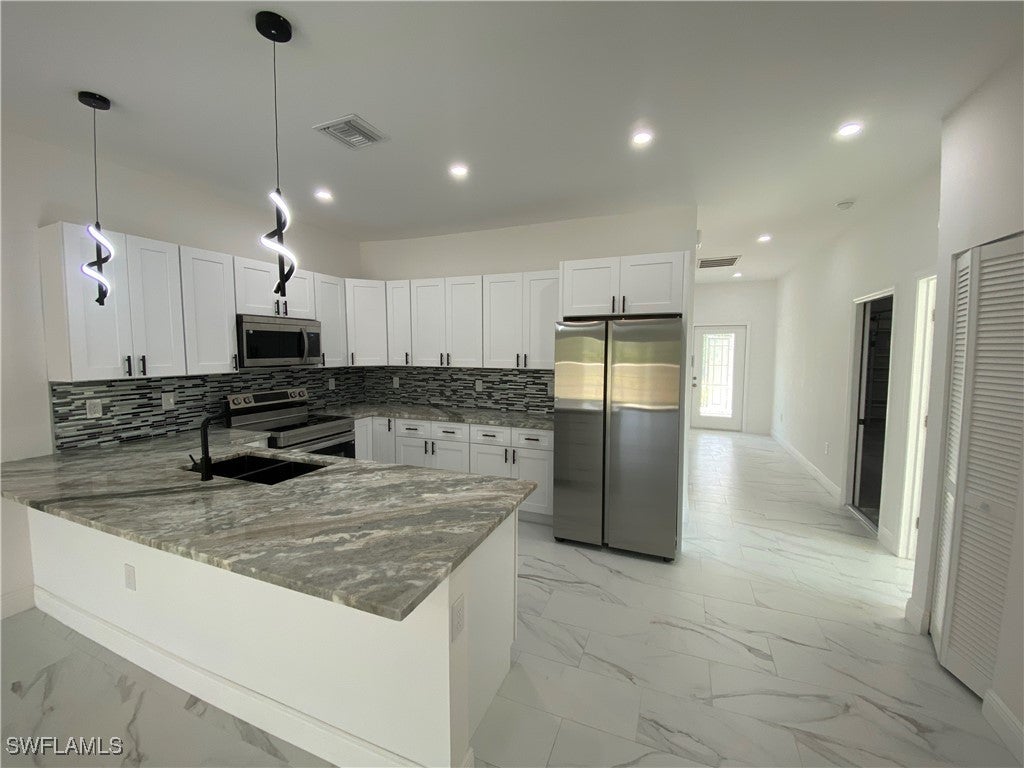 Completed custom design NEW duplex Ready to Move In! Great location surrounded by single family homes in beautiful area in Lehigh Acres! Attention Investors or owners! Another stunning New Construction Duplex, totaling 6 bedrooms, 4 full bathrooms and 2 car garages, 2388 sqft living area, 3422 Sqft total area. Each unit feature 3 bedrooms, 2 bathrooms, 1 car garage, 1194 sqft living area, 1711 sqft total area, covered lanai and large driveways. Great open concept kitchen with white shaker style cabinets with eat in-island or breakfast bar, granite countertop and stainless steel stoves, refrigerators, dishwashers and microwaves, sinks, brushed nickel faucets in bathrooms and black faucets in Kitchen, Glass Mosaic backsplash, porcelain tile throughout, gutters, well systems, new sod and landscaping with trees and decorative plants. Unit 5444 is rented at $2200/month till March 2026. Convenient Located in SW area of Lehigh Estates, quick access to Buckingham Rd, SR 82, I-75, Colonial/Lee Blvd, shopping centers, banks, restaurants, golf course, Fort Myers International Airport and beautiful Beaches. We will have available in April 2025, 4-5 duplexes, same model, by same builder, just minutes distance from this duplex! Ideal for investors looking for a portfolio. No community, no HOA fees or rental restrictions. Come enjoy Florida lifestyle and weather! Please see Virtual Tour!
