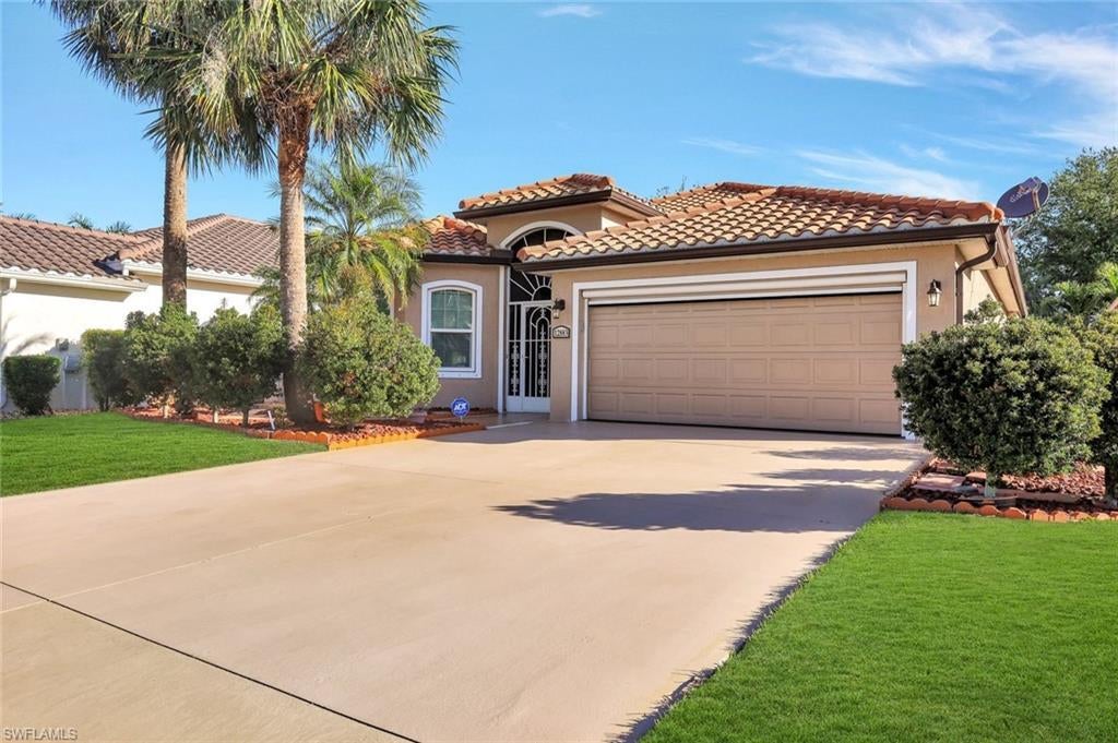 Discover this beautiful home located in the highly sought-after guard-gated Stoneybrook community in Gateway. This lushly landscaped home features 3 beds, 2 baths, a den with a double door entry, spacious living room, upgraded kitchen with granite counters & stainless appliances, dining, an enclosed lanai/sunroom with glass windows, laundry room with an additional refrigerator, and a 2-car garage. Special features include: laminate floors, built-in entertainment center in the living room, custom closet in the primary bedroom, motorized screens on the lanai/sunroom windows, remodeled second bath, newer washer & dryer, gutters, motorized screen over garage door, additional kitchen & cabinets in the garage for extra storage . ROOF was replaced in 2019. Stoneybrook offers resort style amenities. Located minutes away from downtown Fort Myers River District, Shopping, Dining, Schools, Airport, Hospitals, Golf Courses and Beaches.