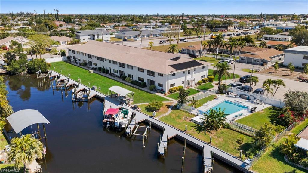 This charming second-floor condo offers the ultimate waterfront lifestyle. 1bed + Den and 1 bath gulf access condo is just a short walk from downtown Cape Coral and the Bimini Square Project. You are also close to Cape Coral's Yacht Club, Cape Harbor, and Tarpon Point's restaurants and shops. The unit offers an open concept design, spacious kitchen and a florida room. The master bedroom is spacious with a large walk-in closet. Large Den that has been converted to a second bedroom with its own closet and a door for your privacy. Upgrade bathroom with tile shower. This well-maintained 18-unit complex is impeccably kept and provide a safe living environment. It is not a 55+ building, and owner pets are welcome with approval. Located on the second floor, this unit has never been affected by a hurricane. HOA covers flood insurance. Comes with 1 PARKING SPACE. Watch the sunsets and relax in the pool or the dock area! ideally located near restaurants, grocery stores, and shoppings. This home is perfect for a second home, vacation rental, or long-term investment. The seller is motivated, so bring your offers and make this coastal retreat your new home!