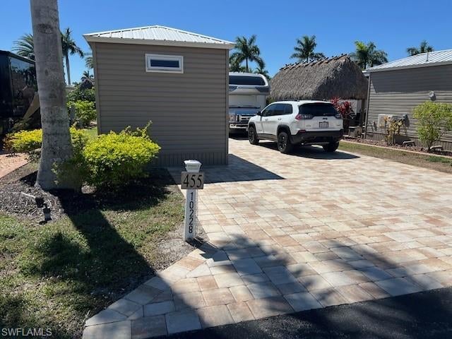 This north east facing lot that offers 100% coverage by Pavers in a pleasant neutral color. Bring your 5th Wheel, Motorhome or Travel Trailer and back in to this fabulous lot. The property includes an unfinished Amazon 10 x 12‘ shed that is ready for your customization of a shower, a sink, and a toilet. You can decide what personal type of floorcovering, side walls and lighting that will appeal to you. Included on the lot is a 10 x 24‘ Tiki Hut which has power including twin ceiling fans. It has been custom built by Tiki Huts advanced construction corporation which is commonly used by Cypress Trail residence. There is a super size large rear green space with plenty of room for sunbathing or sit under this Tiki to cool off. The clubhouse is approximately two blocks away and the end of Meadow beauty Trail is a large Tiki covered dog park right next to the recycling center. Meadow beauty trail offers additional royal palm lighting to accent your lot. Come and see this fabulous lot.