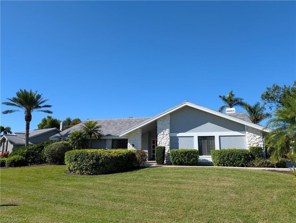 Super nice estate home in Fiddlesticks has the perfect set up for entertaining and has recently been UPDATED with a NEW ROOF in July 2023, updated kitchen and master bath, fresh paint. With almost 3000 square feet under air, this light, bright & open home features a formal living and dining area, large family room with wood burning fireplace and wet bar with light feature.... which is just off the open kitchen with plenty of cabinet and counter space, breakfast bar and breakfast nook. Continue your party outside by the large pool and use of the undercover lanai while taking in the expansive golf course view of the #18 hole of the famed Long Mean golf course. You have plenty of room for guests with two guest rooms having one full and one half bath(which also doubles as the pool bath). The owner's suite is very spacious with a large walk in closet with dressing room, sitting area, dual sinks, soaking tub & walk in shower. Home features a roomy 2 car garage, with extra storage and a second washer and dryer. Home is located on an oversize, interior lot with lots of green space and is just steps to the clubhouse. Brand new pool pump installed June 2025. Don't miss this opportunity to own in one of Ft. Myers finest low-density Country Club communities with 36 holes of championship golf, practice facility, two putting greens, clubhouse with fine dining, lighted Har-Tru tennis courts, heated community pool & spa with cabana offering full food and bar service, staffed fitness center, dog park, pickleball & bocce ball courts, very active social calendar. Fiddlesticks is located close to shopping, restaurants, schools, I-75, airport, ball parks and a short drive to the beautiful white sandy beaches. Mandatory $115,000 membership fee due at closing. No CDD fees. Own your own golf cart. NO WAIT LIST HERE.