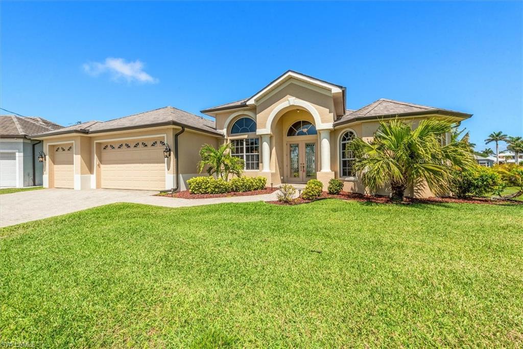 LOCATION, LOCATION, LOCATION!!! This stunning three-bedroom plus den, 3 1/2 bath Direct Gulf Access pool home offers the ultimate waterfront living experience on an oversized lot. With 360-degree water views, you’ll enjoy unparalleled scenery from every angle. The home is located just a short 30-minute boat ride to open water, making it a boater’s paradise. Step inside to discover a spacious open floor plan with high ceilings and a seamless flow perfect for both relaxing and entertaining. The expansive living areas include a breakfast bar, ample storage, and a second master suite, providing plenty of space for family and guests. The home features a split floor plan, offering privacy and comfort for everyone. For boating enthusiasts, the property includes a 16,000-pound boat lift and a captain’s dock, providing direct access to the Gulf. The outdoor area is a true highlight, boasting an infinity edge pool and spa, outdoor grill, ideal for enjoying the gorgeous views or unwinding after a day on the water. Notable updates include a new daltile roof installed in 2023, a new air conditioner in 2021, and a new hot water heater in 2023, ensuring peace of mind for years to come. The home also features a spacious three-car garage. Conveniently located near some of Cape Coral’s best hotspots, you’ll have a quick drive to Tarpon Point Marina, Cape Harbor, as well as excellent dining, shopping, and entertainment options. This home is truly a water front gem including transferable flood insurance. Schedule your showing today!