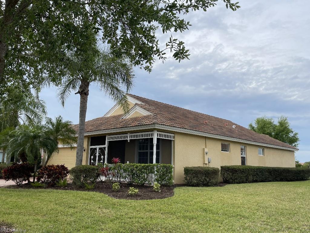 Don’t miss seeing the incredible water view from this home on the widest pond in this very active 55+ community of Cascades at River Hall. Selling TURNKEY this seasonal home has been used only 3 months a year for the last 8 years. The front double door entryway leads to a great entertainment area displaying a light bright large open floor plan with vaulted ceilings. This single family home boasts 2 bedrooms, 2 bathrooms, a den currently used as a 3rd bedroom, breakfast area off the kitchen that could be used for an office, laundry room and a 2 car garage. Many features including NO FLOOD ZONE, HURRICANE IMPACT WINDOWS, screened front porch, screened rear extended lanai, master bath has double sinks and a large roll in shower with a flat curb free entrance. (No shower door or curtain needed). The kitchen has stainless steel appliances, wood cabinets with granite countertops and a glass tile backsplash. Neutral tile and paint, New LVP in both bedrooms (2022), New Roof (2021), New dishwasher (2025), Low monthly HOA $343 paid quarterly includes lawn care, cable, internet, gated entrance and a beautiful clubhouse with a heated community pool and spa, fitness center, BBQ grills, tennis, pickleball and bocce courts. Don’t hesitate to see this lovely home with the amazing view.
