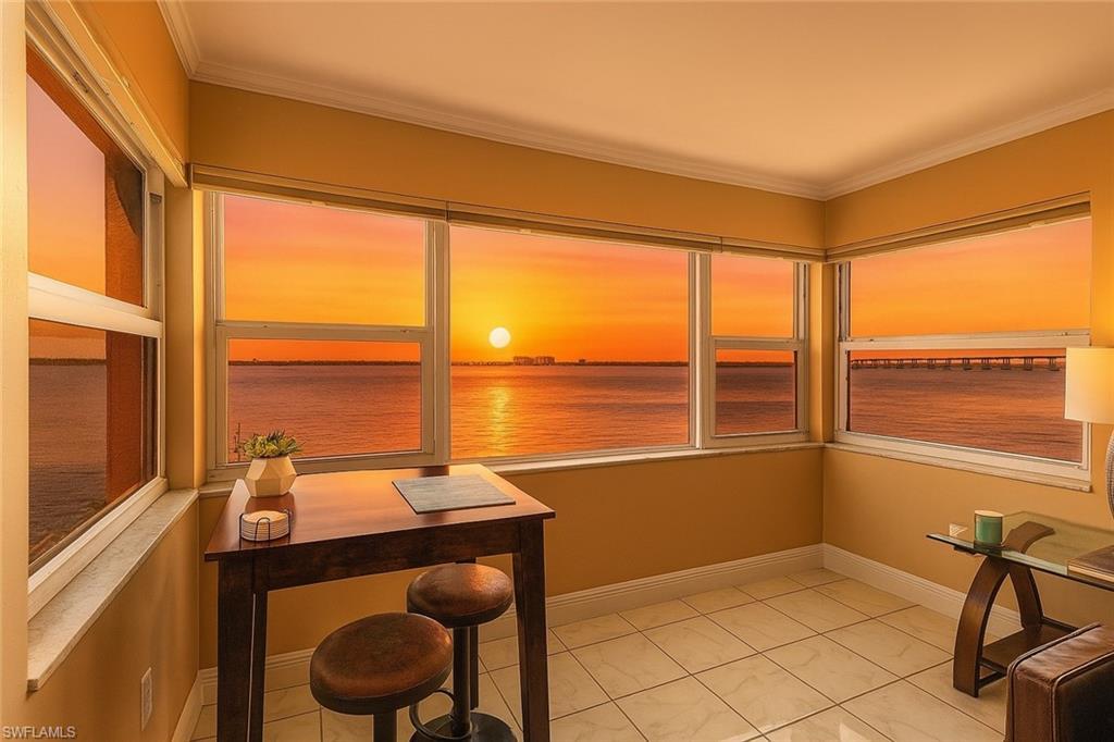 Breathtaking Sunsets & Million-Dollar Views--Without the Price Tag! Step into this beautiful Turnkey, 2-bedroom, 2-bath home on the 4th floor and take in sweeping big-water views that will leave you in awe. This waterfront gem features a kitchen with granite countertops & stainless steel appliances. The guest bedroom includes a versatile Murphy bed/desk system. The unit as a whole has stylish tile flooring throughout, and convenient in-unit laundry. Located in a highly desirable, low-density building in the heart of downtown—just blocks from premier shopping, dining, and entertainment. White sand beaches and the Southwest Florida International Airport are within comfortable driving distance. Savor your mornings with coffee or unwind with evening cocktails as you watch boats drift by, pelicans dive, and dolphins play—right outside your window. You couldn’t be closer to the water unless you were in it! Live the ultimate Florida lifestyle in this one-of-a-kind waterfront residence!