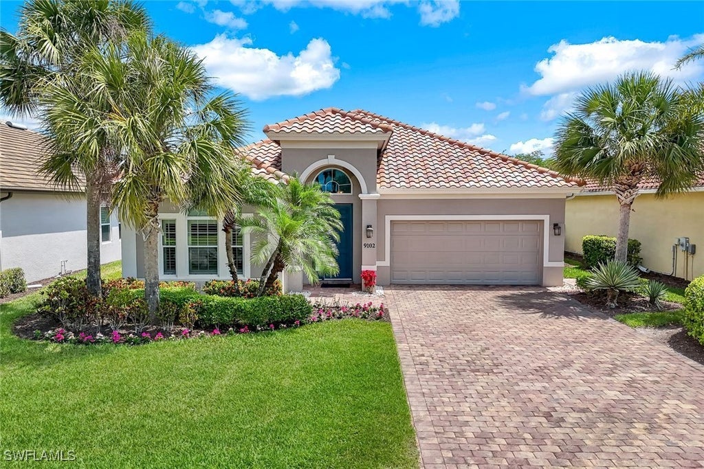 EXPANSIVE GOLF AND PRESERVE VIEWS, NO GOLF WAITLIST! Are you looking for a luxury, amenity-rich optional golf and boating community? Look no further than The Quarry, an exceptional lakefront community sprawled across over 500 acres of pristine lakes. This immaculate 3 bedroom, 2 bath, 2 car garage home is situated on a large lot with stunning golf and preserve views and is now being offered TURNKEY! ALL YOU NEED IS YOUR SUITCASE TO START ENJOYING THE FLORIDA LIFESTYLE! The light and bright kitchen is perfect for entertaining family and friends and features white shaker cabinets with pull out drawers, granite countertops, and stainless-steel appliances. Enjoy sitting on your spacious lanai with a saltwater pool and spa overlooking the golf course. Additional features include 20-inch tile floors in the main living area, upgraded luxury plank floors in the bedrooms, plantation shutters, electric shutters on the lanai, NEW AC plus more! This gated, amenity-rich environment is perfect for golfing, boating, water skiing, jet skiing, kayaking, and fishing enthusiasts. Enjoy the Beach Club, which features a resort pool, lap pool, hot tub, tennis, pickleball, and bocce courts, a Tiki bar with poolside food and beverage service, a state-of-the-art wellness center, and a full-time activities director who organizes a variety of social events. There is also NO WAITLIST for OPTIONAL golf membership to The Quarry Golf Lodge and a NEW Limited-time 3-year payment plan available for the PGA-level Hurdzan-Frye 18-hole golf course. Whether you are an avid golfer or simply want the lifestyle without the obligation, discover The Quarry!