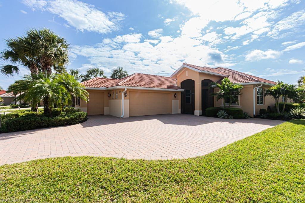 MAGNIFICENT, WCI built Barcelona model! located in Prestigious Pelican Preserve-the ultimate 55+ community in SW Florida. As you enter this beautifully appointed fully furnished and updated home notice the wonderful views of landscaping, pond and golf course, very private and serene. Notice the pebble flex coating on floor and also the entire lanai has pebble flex coating-much softer to walk on. Numerous upgrades including all windows are hurricane proof, crown moulding throughout, newly painted interior-neutral coloring, new tile throughout, custom built 2 sided bookcase with extra dresser storage. This home is in part of Pelican Preserve that offers whole house natural gas! The main bedroom features upgraded under padding, blackout curtains and shades, 2 walk-in closets, enter the spacious bathroom and notice the oversized walk-in shower with spa shower heads and jets and extra storage/closet space. The main bathroom has been upgraded with new toilet, faucets, exhaust fan and lighting. Kitchen features new appliances and external exhaust fan as part of the microwave. Enjoy the private den/office featuring built in desk with upgraded carpet and padding and ceiling fan. Guest BR, fully furnished, includes wall mounted TV, upgraded carpet and walk-in closet. Adjoining guest BA includes new tub and surround, toilet, faucet and exhaust fan. The lanai includes covered area, picture window lanai screen, new pool pump 2025, enjoy morning coffee while relaxing in privacy, natural gas for grilling, pool and spa, with pebble flex flooring surrounding the entire lanai. Spacious full size double garage PLUS golf cart garage, garage fully insulated, both garage doors have GDO with remotes, new coil springs 2025. New hot water heater 2025. This home is beautifully decorated with furniture included. Notice the beautiful well manicured landscaping surrounding this spectacular home and as a bonus, this home features the largest/wide driveway in Pelican Preserve. Located about 1 mile, walking distance to Town Center and the Golf Clubhouse!